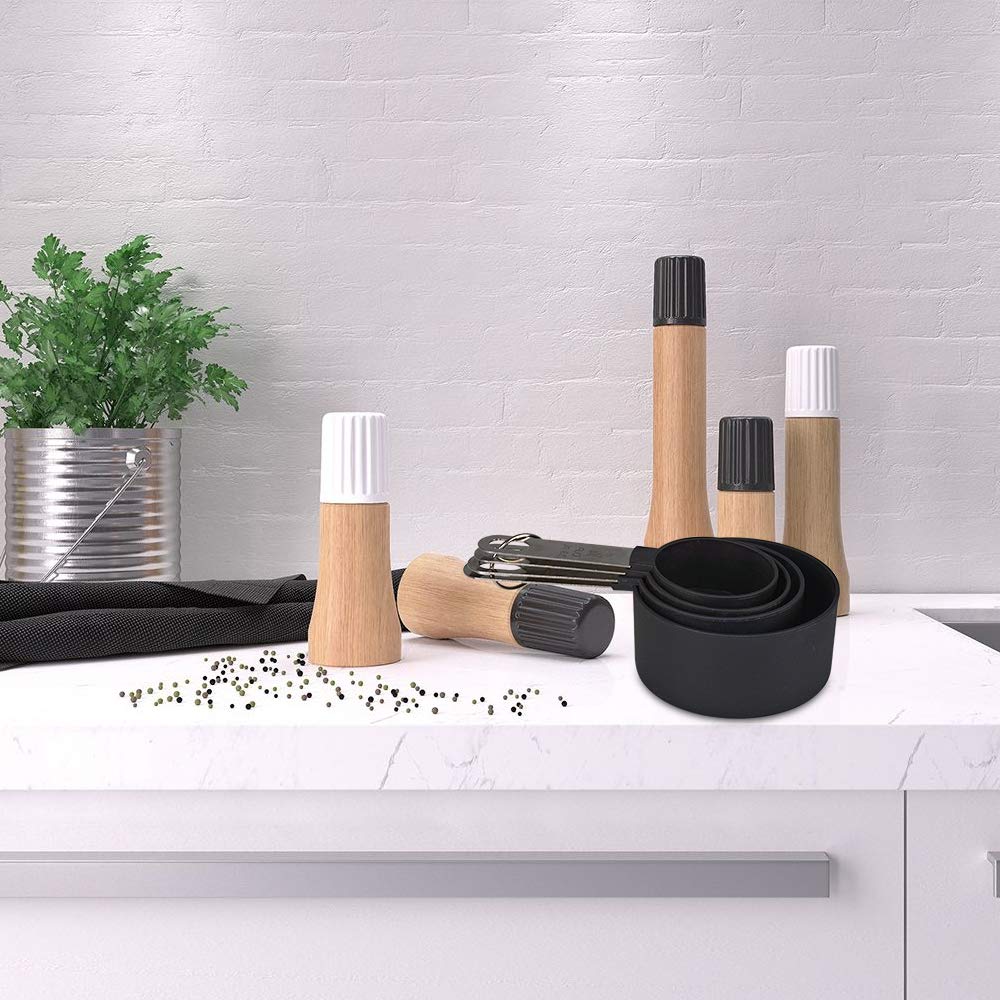 Premium Design: Black nylon measuring cups and spoons with smooth edges and black gunmetal handles for a stylish, modern look