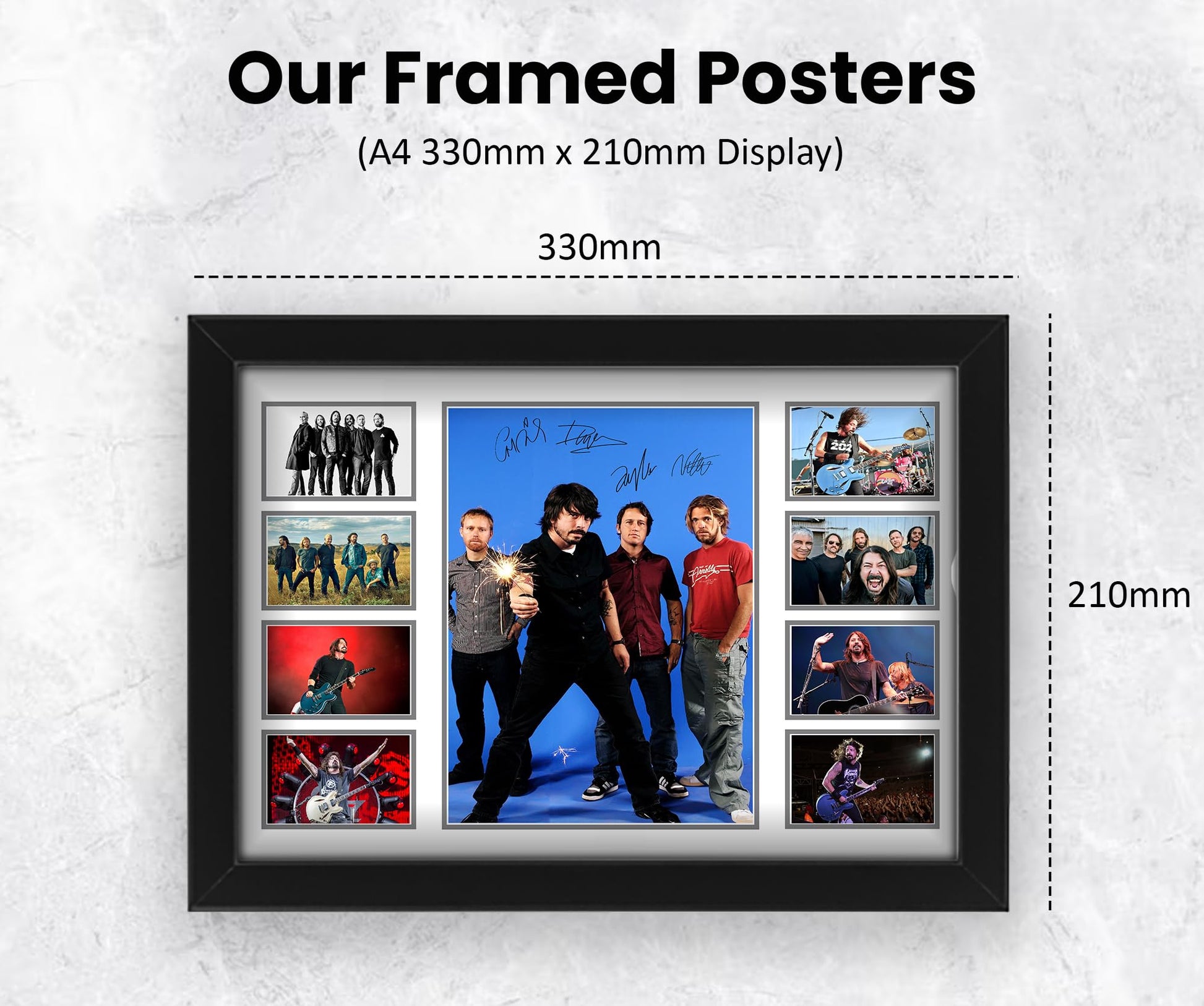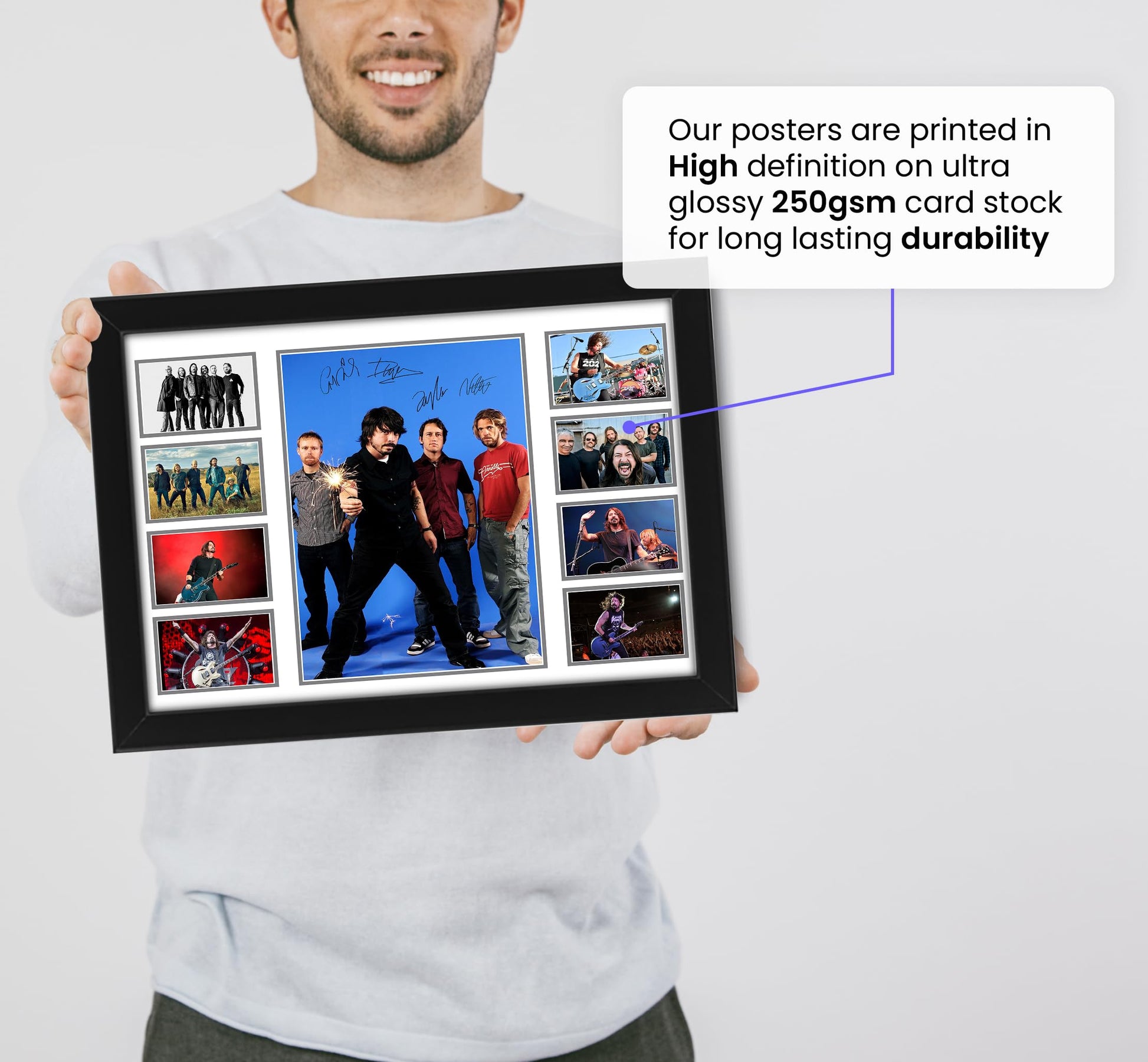 - Foo Fighters Autographed Collage Poster Print | Limited Edition Signed Memorabilia | Framed A3 -