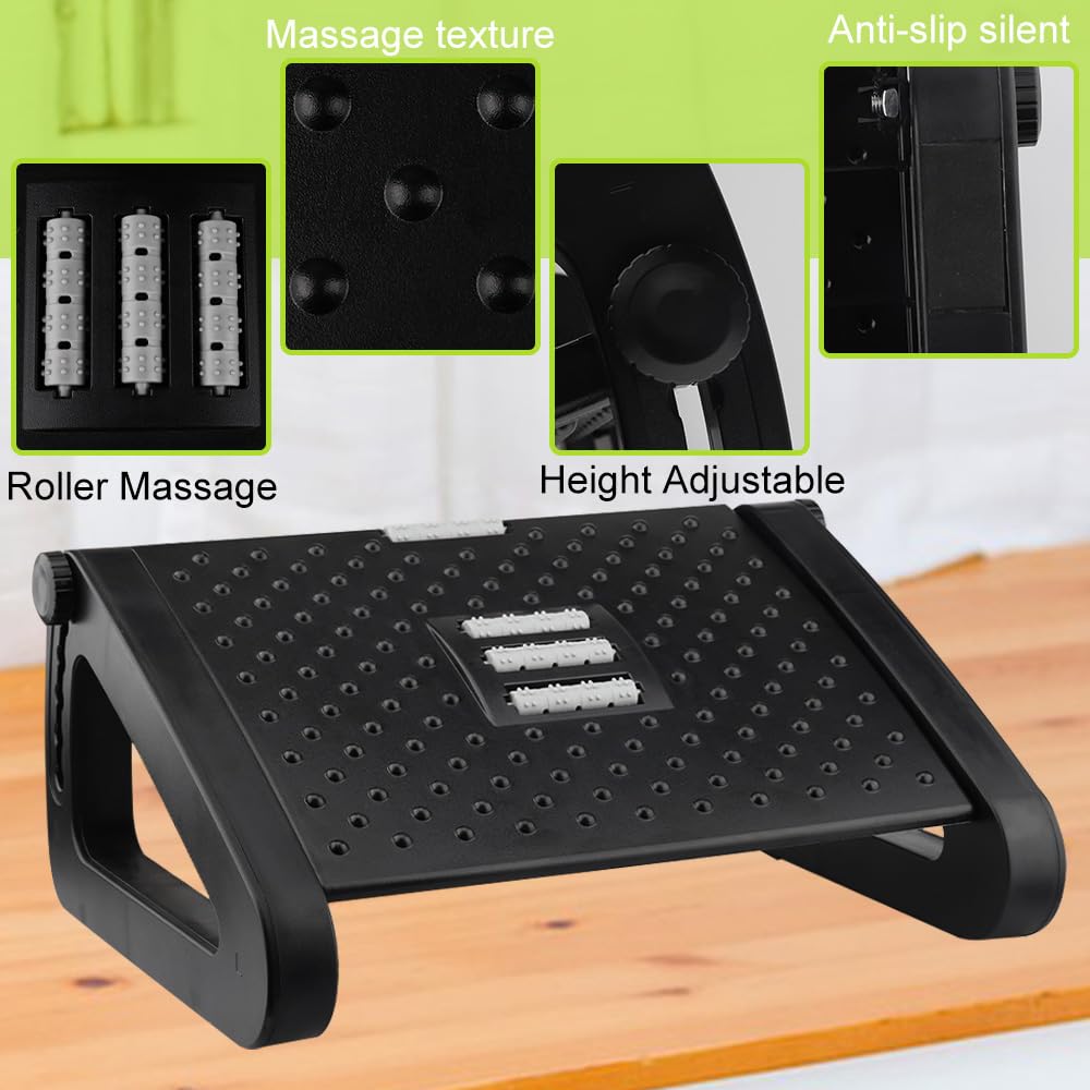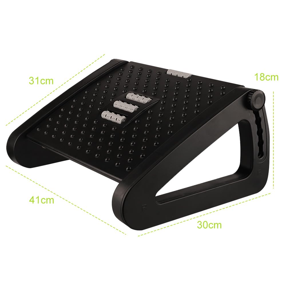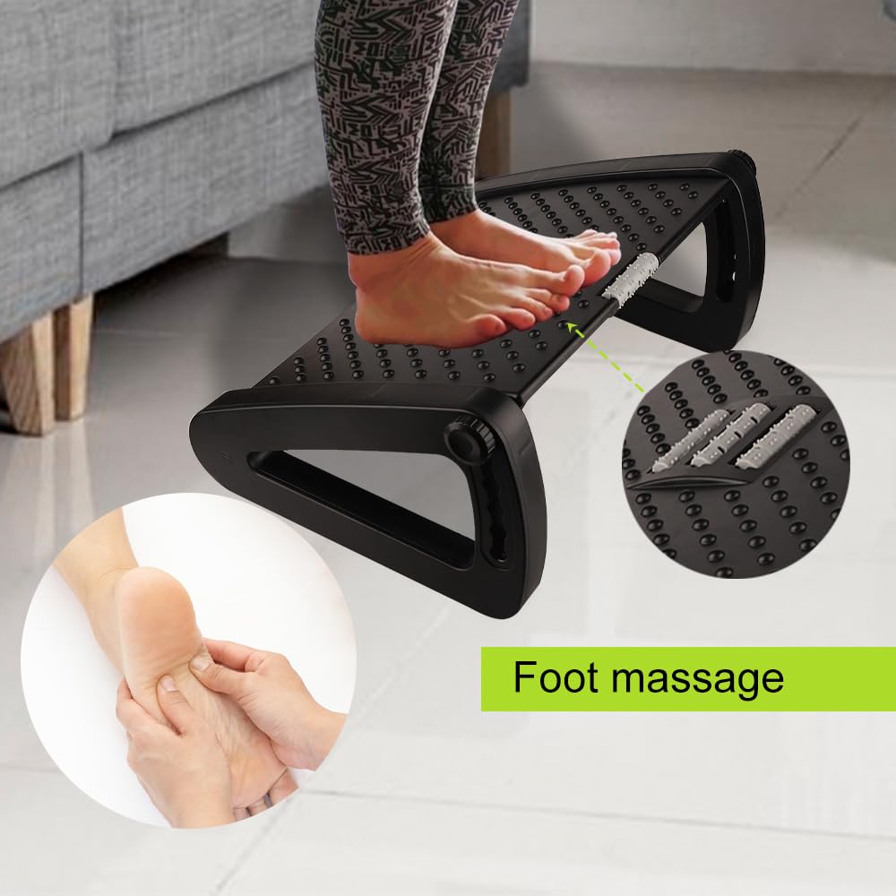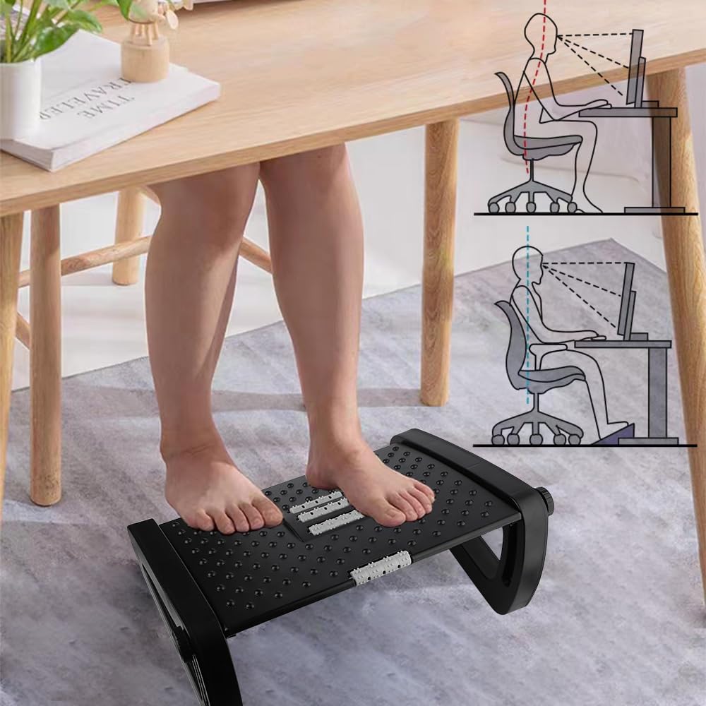 Say goodbye to slouching and sore legs with this adjustable ergonomic footrest – the secret weapon for work-from-home dads and desk-bound warriors. Designed to elevate your comfort and posture, it turns any workspace into a productivity zone with built-in massage benefits.