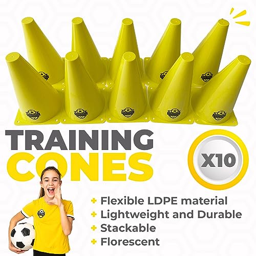 - Football Master ™ | Set of 10 Sport Training Football Equipment Traffic Cones | For Football, Soccer, Skating, Outdoor Games -