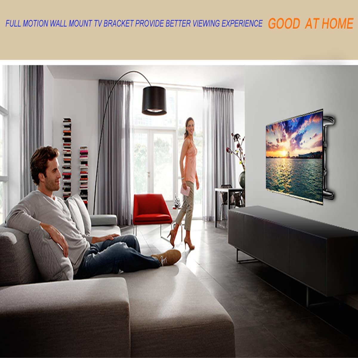 83.8cm Long Arm Extension: The mount fits most 32”-75” flat/curved TVs, with VESA patterns from 100x100mm to 600x400mm, and supports weights up to 45kg.