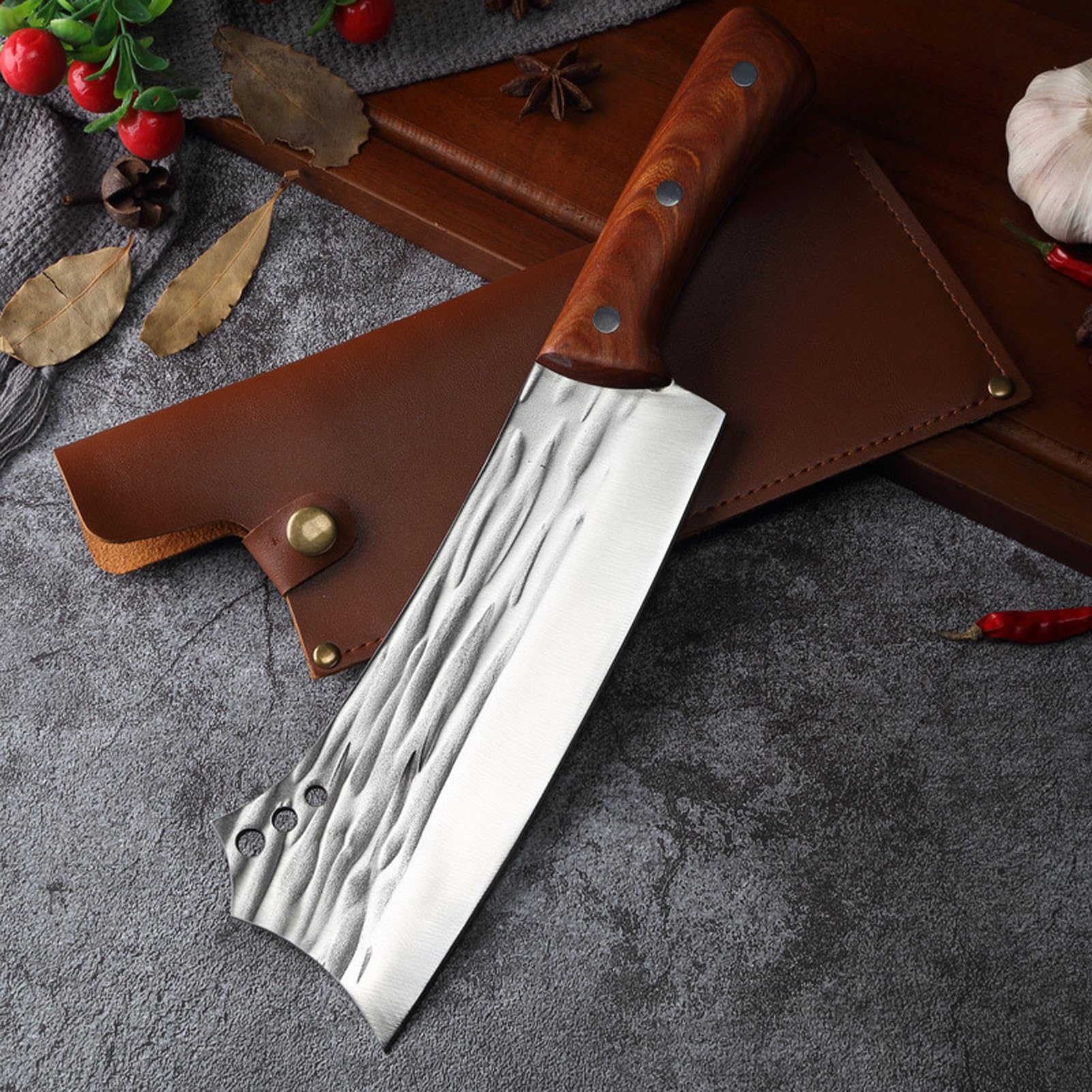 Premium Material: Handmade from 5mm thickened 5Cr15MoV high carbon stainless steel, with enhanced hardness (58±2 HRC) for long-lasting sharpness and wear resistance