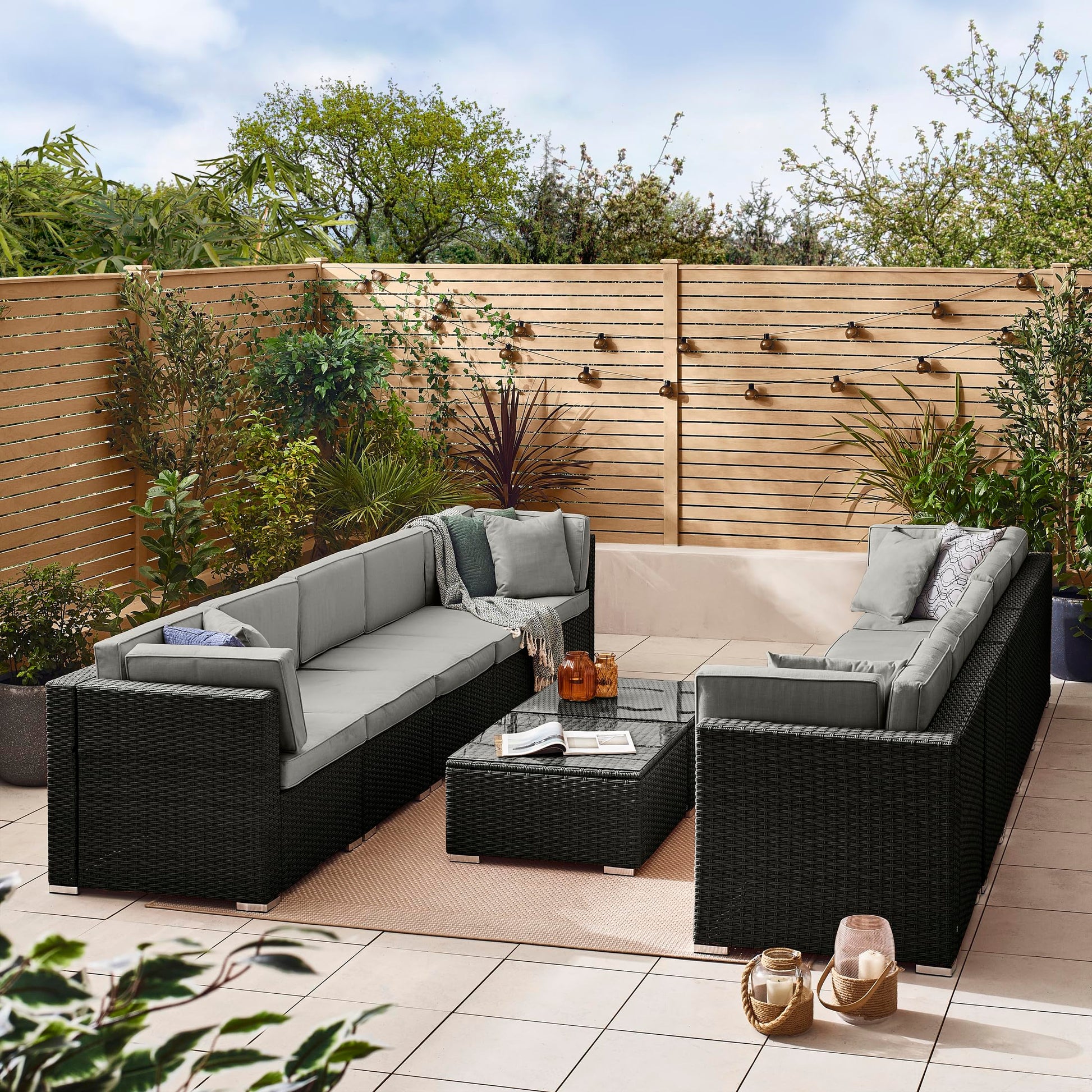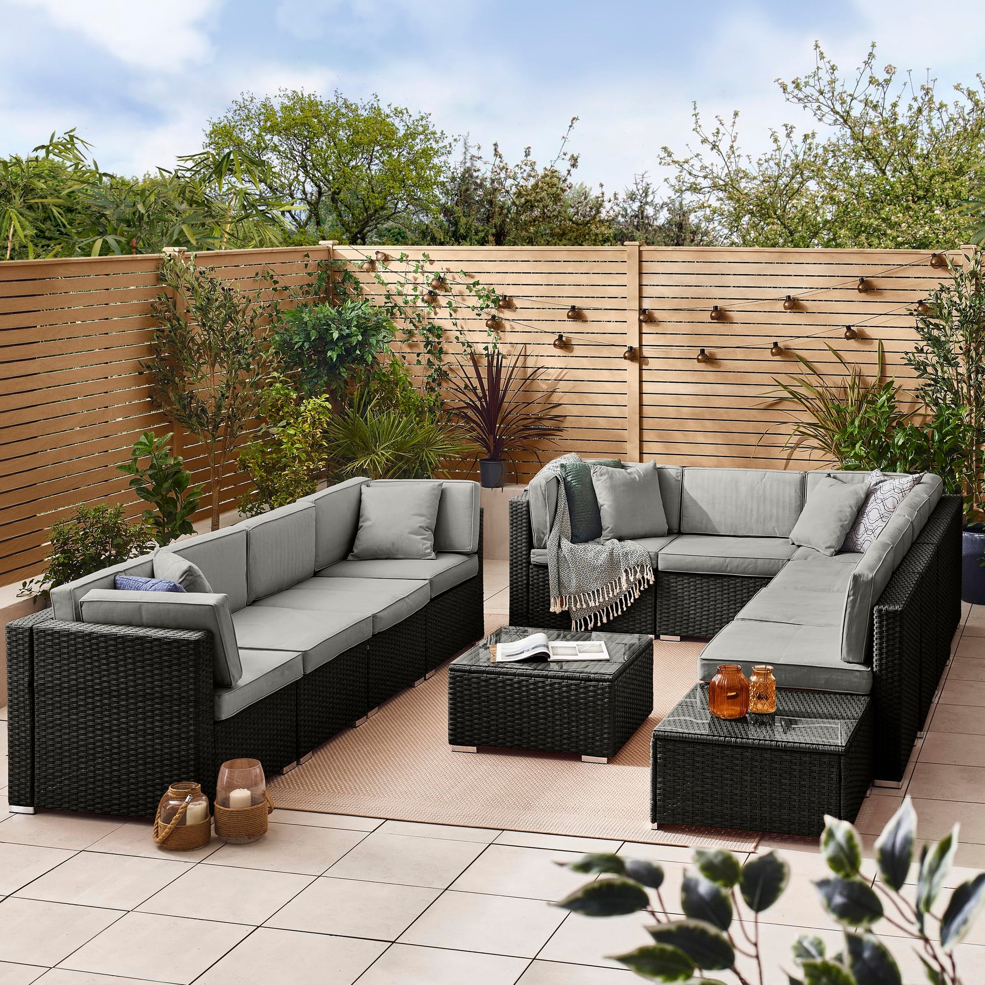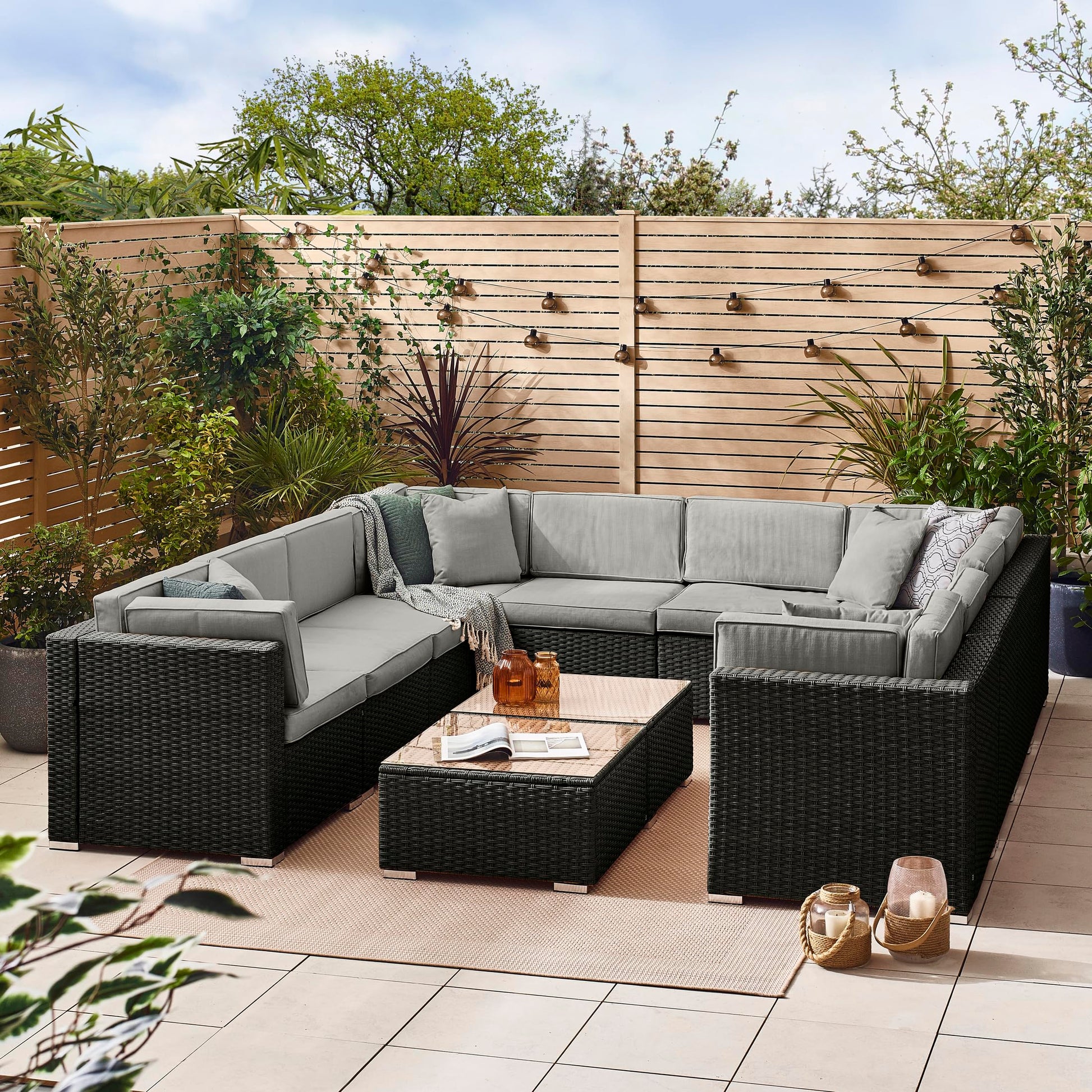 - Furniturebox UK | Orlando 10 Seat Modular Outdoor Garden Sofa | Black Rattan Garden Sofa With Grey Cushions -
