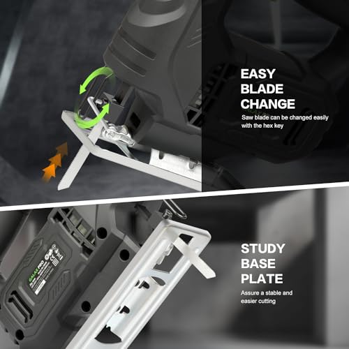 Powerful Performance: Driven by a 400W motor and a no-load speed of 3000 RPM, this jigsaw delivers consistent cutting power through wood, PVC, and even aluminium alloy.