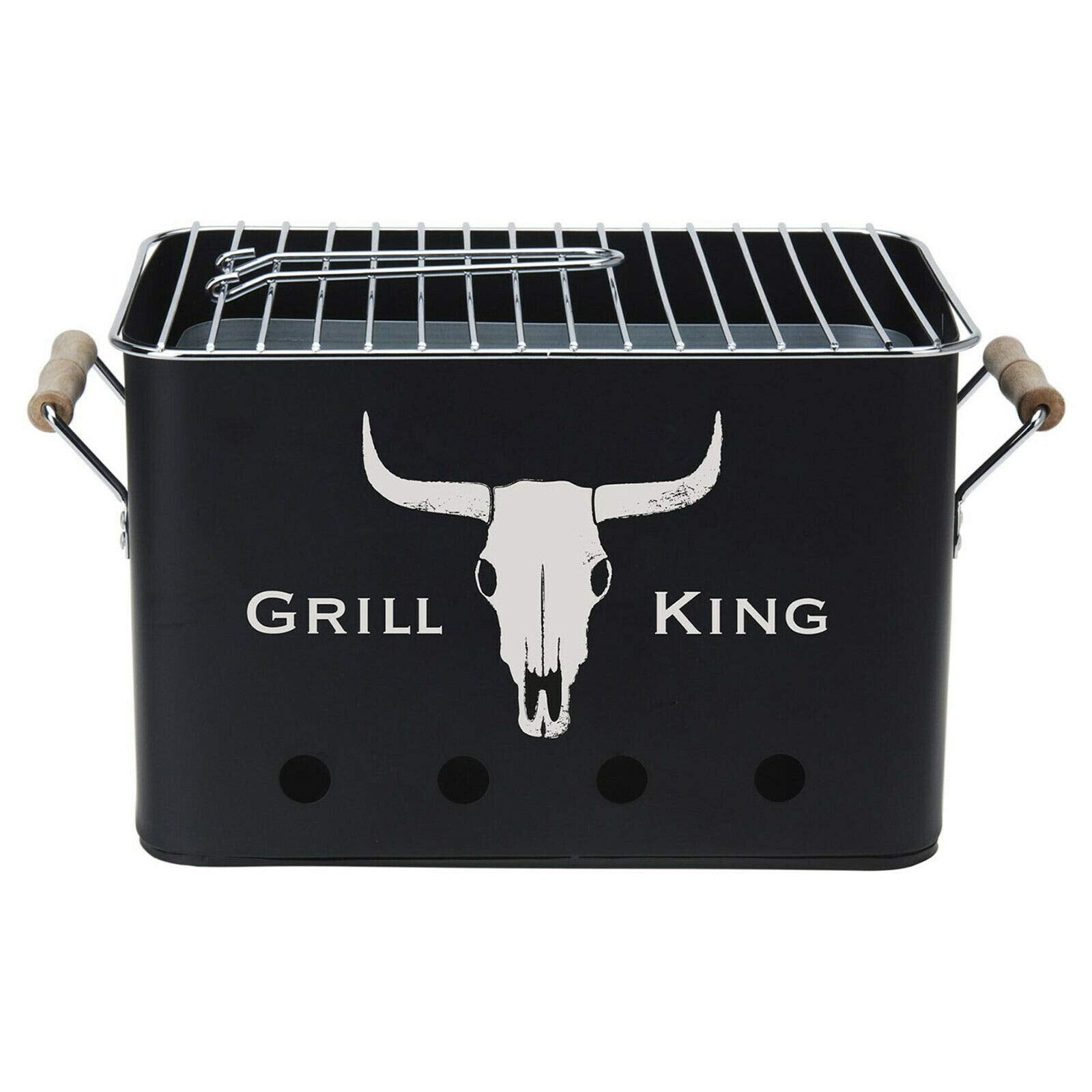 - Modern Design BBQ Grill: This sleek black grill features silver accents on the grate and coal bowl, with a unique "Grill King" stamp. The wooden handles ensure a safe and easy grip while handling, adding a stylish touch to your outdoor cooking experience.