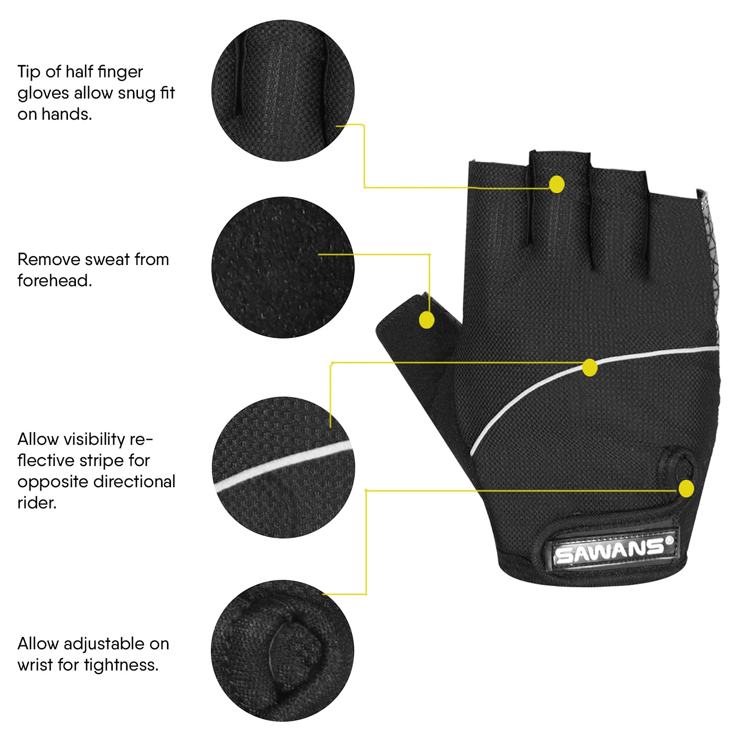 Whether you're hitting the streets on your road bike or gearing up for an adventurous mountain bike ride, the SAWANS cycling gloves provide comfort, support, and excellent grip. These gloves are designed with a breathable mesh fabric and padded palms to absorb shock, while the non-slip silicone ensures a firm grip on your handlebars.