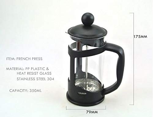 - GLOW Classic Continental 350ml Black Cafetière | Glass Pot & Plunger Filter For Ground Beans -