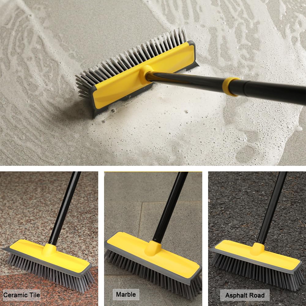 - Floor Cleaning Brush with squeegee | 60” Long Handle Push Broom | Stiff Bristles Deck Broom -