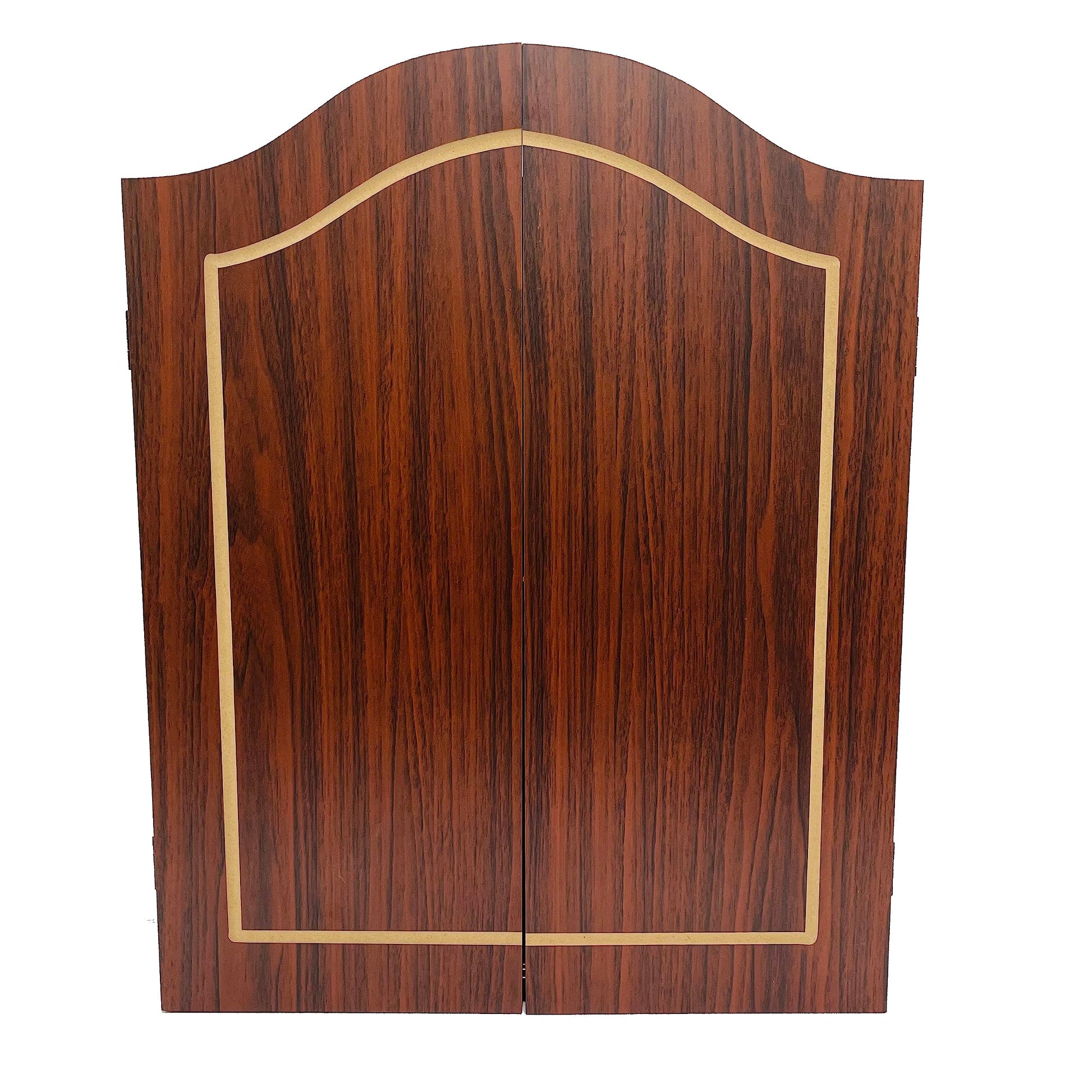 Complete Set: Includes a Walnut PVC Laminated MDF cabinet, Gorilla Darts Double 20 dartboard, and 6pcs steel tip darts