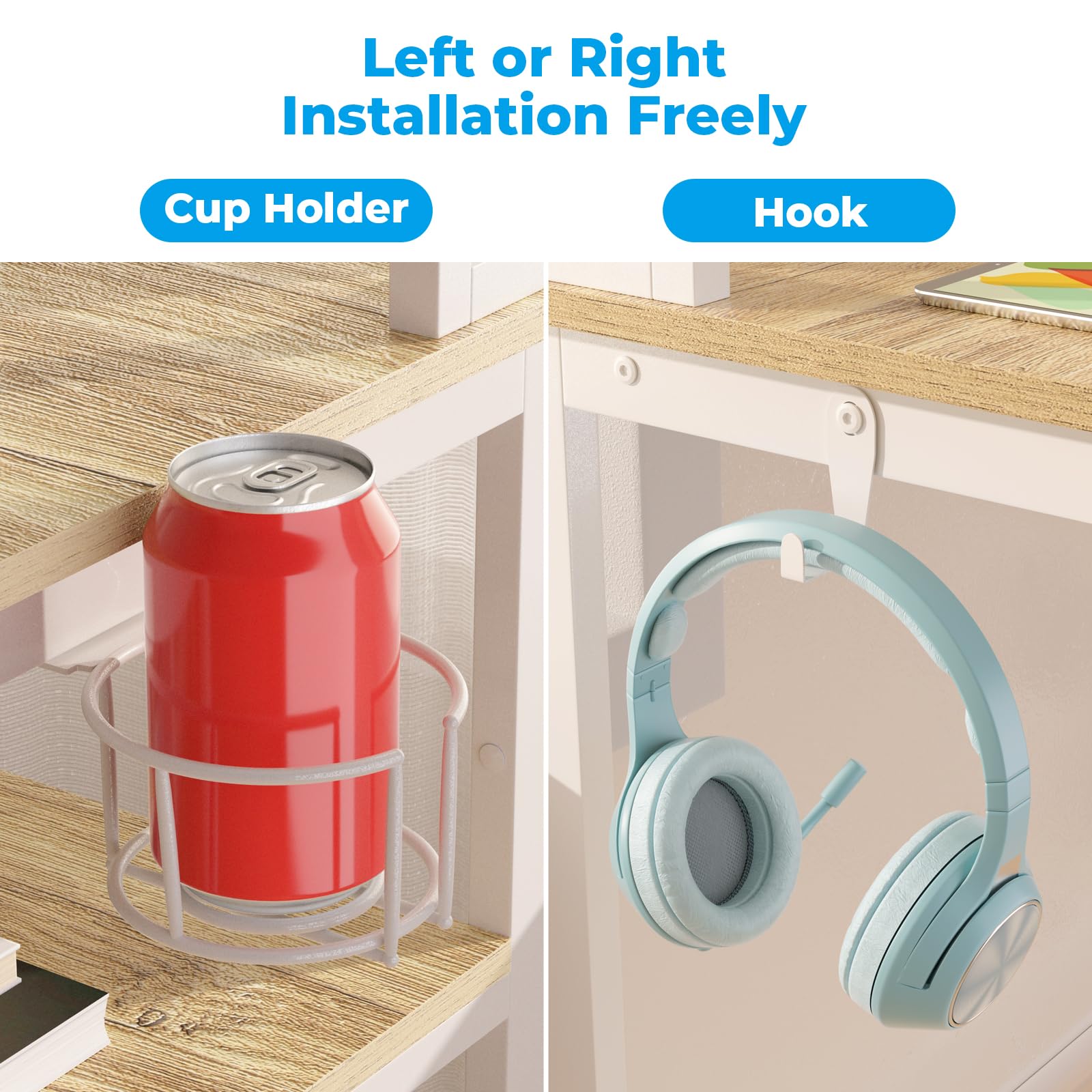 Desk Hook & Cup Holder: Keep your essentials close and your workspace tidy—perfect for headsets, bags, or that essential morning coffee.