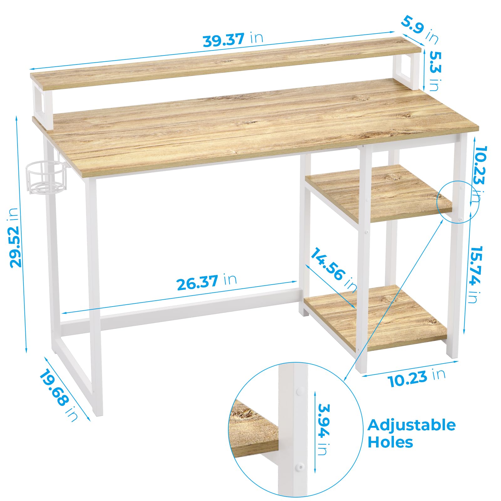 Computer Desk with Monitor Stand, Hook & Cup Holder – Clever Space-Saving Workstation for Dads Who Mean Business