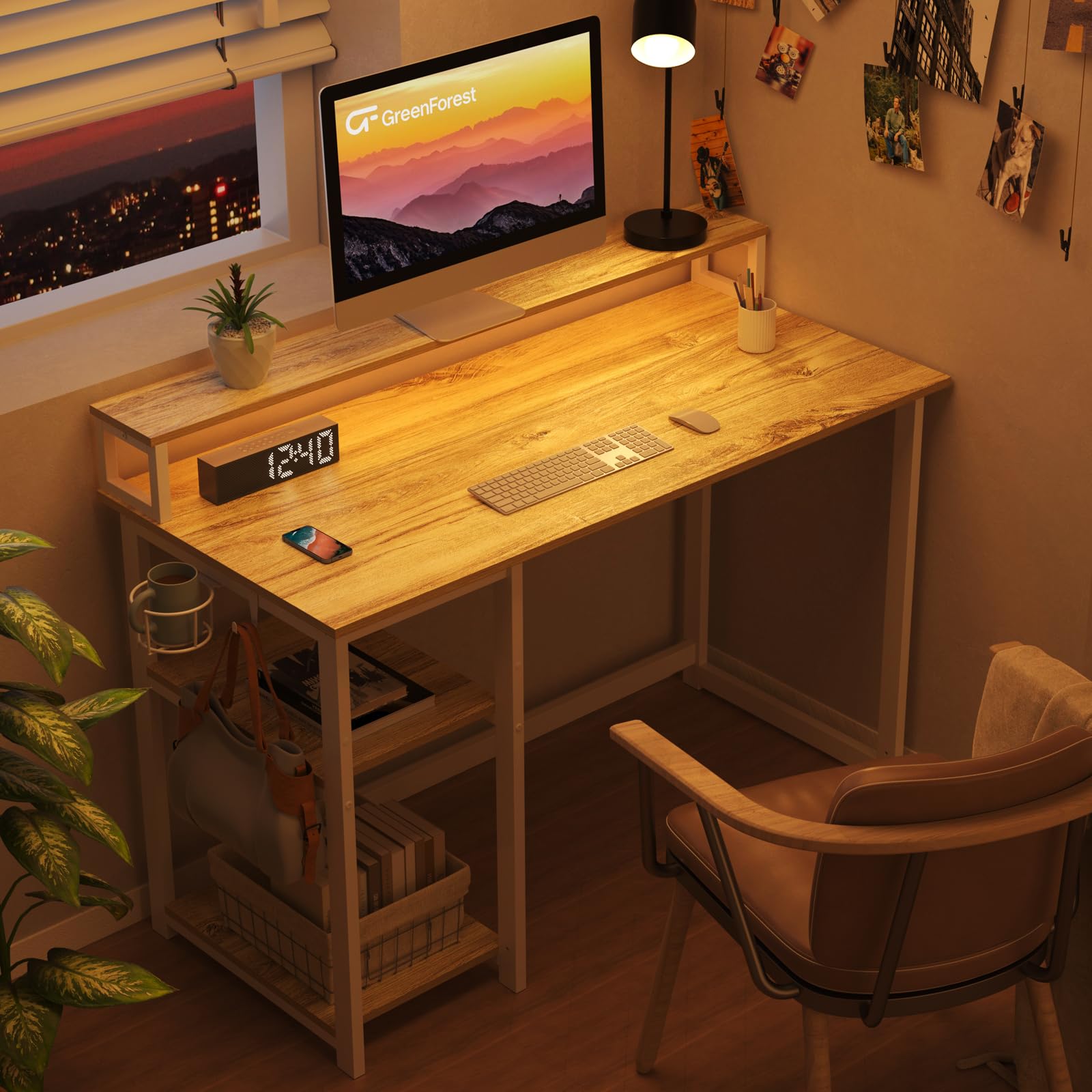 - GreenForest Computer Desk With Full Monitor Stand | 100cm Home Office Desk -