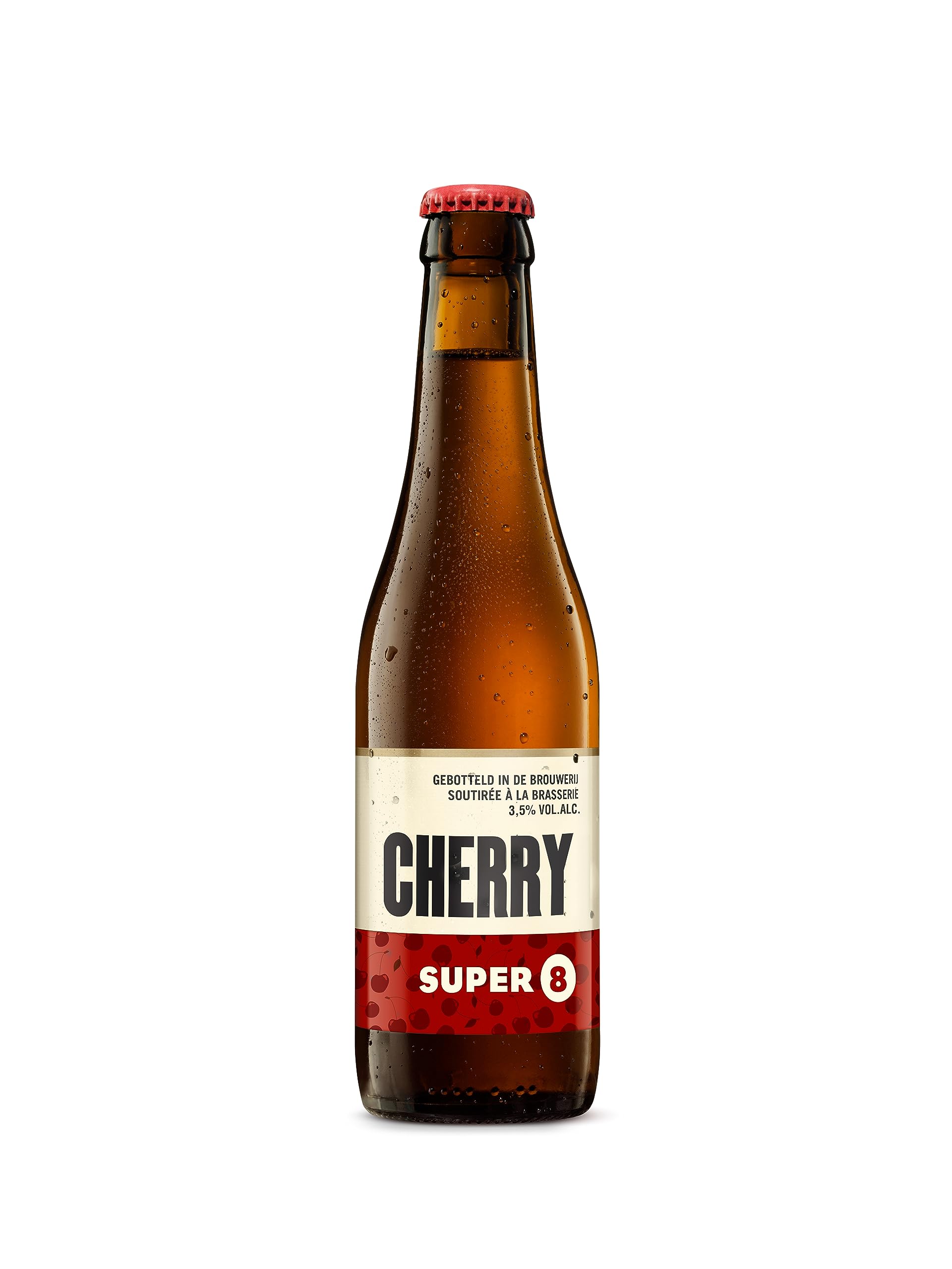 SUPER 8 Cherry 3.5% ABV: A fruity wheat beer with the bold taste of summer cherries, creating a tart and sweet drinking experience.