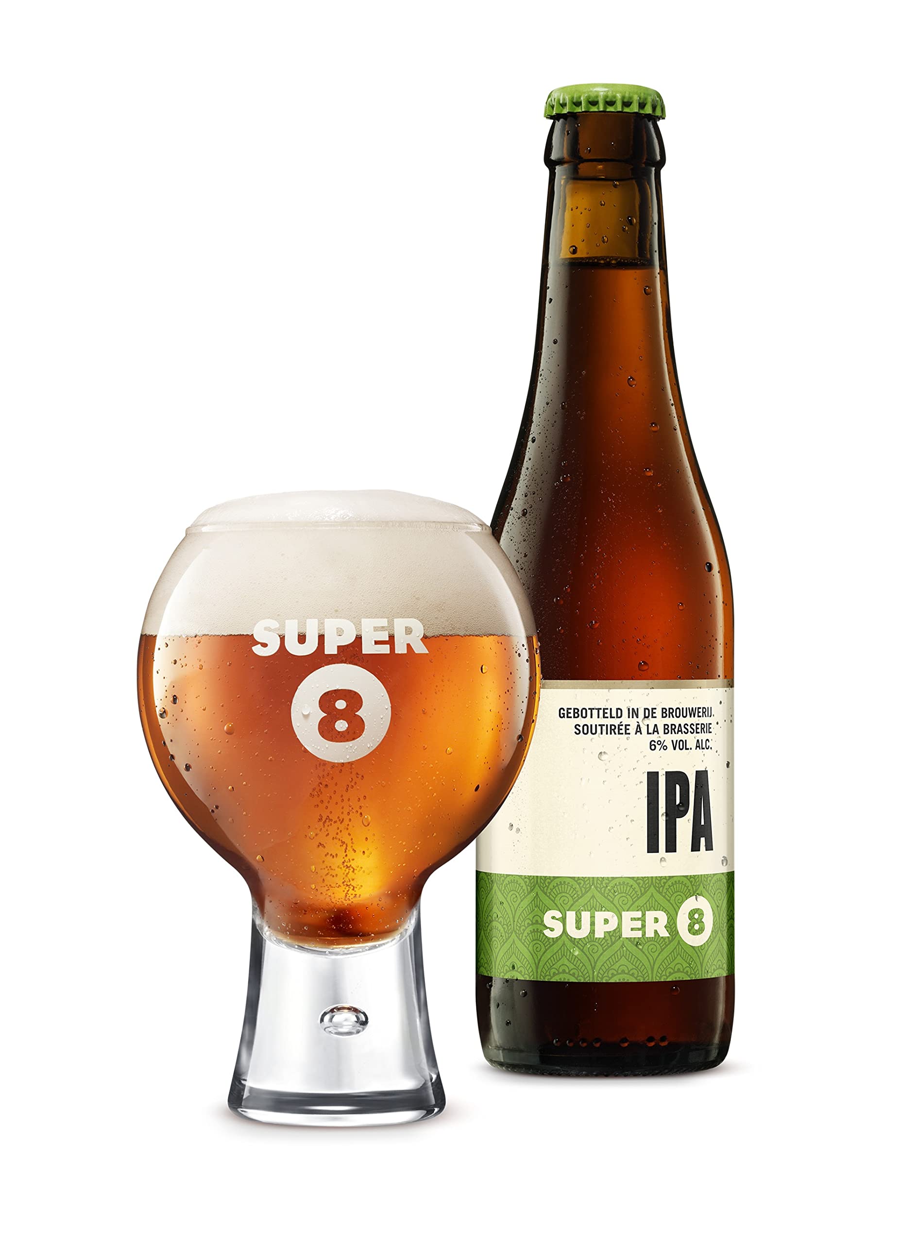 SUPER 8 IPA 6% ABV: A hoppy amber beer with citrus and grapefruit notes, perfect for IPA lovers.