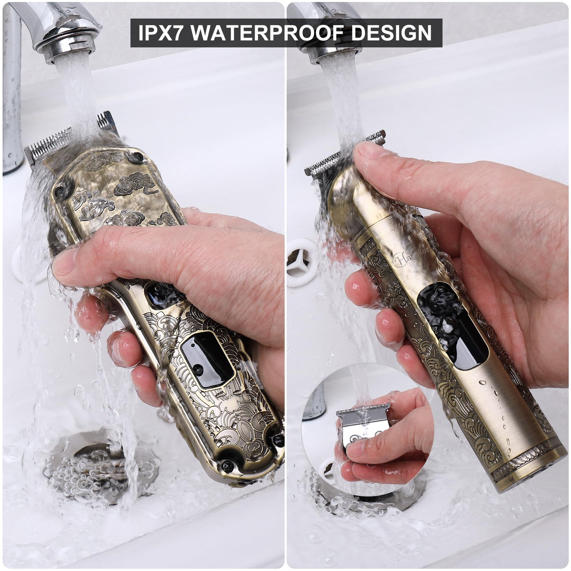 LED Display & Waterproof Design – The LED display shows battery power, lock status, and cleaning reminders. The waterproof design allows easy cleaning of the clipper and trimmer under water.