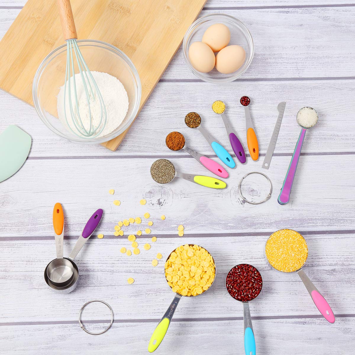 Complete 14-Piece Set – Includes 5 measuring cups, 6 spoons, a coffee scoop with clip, a measuring level, and 2 storage rings.