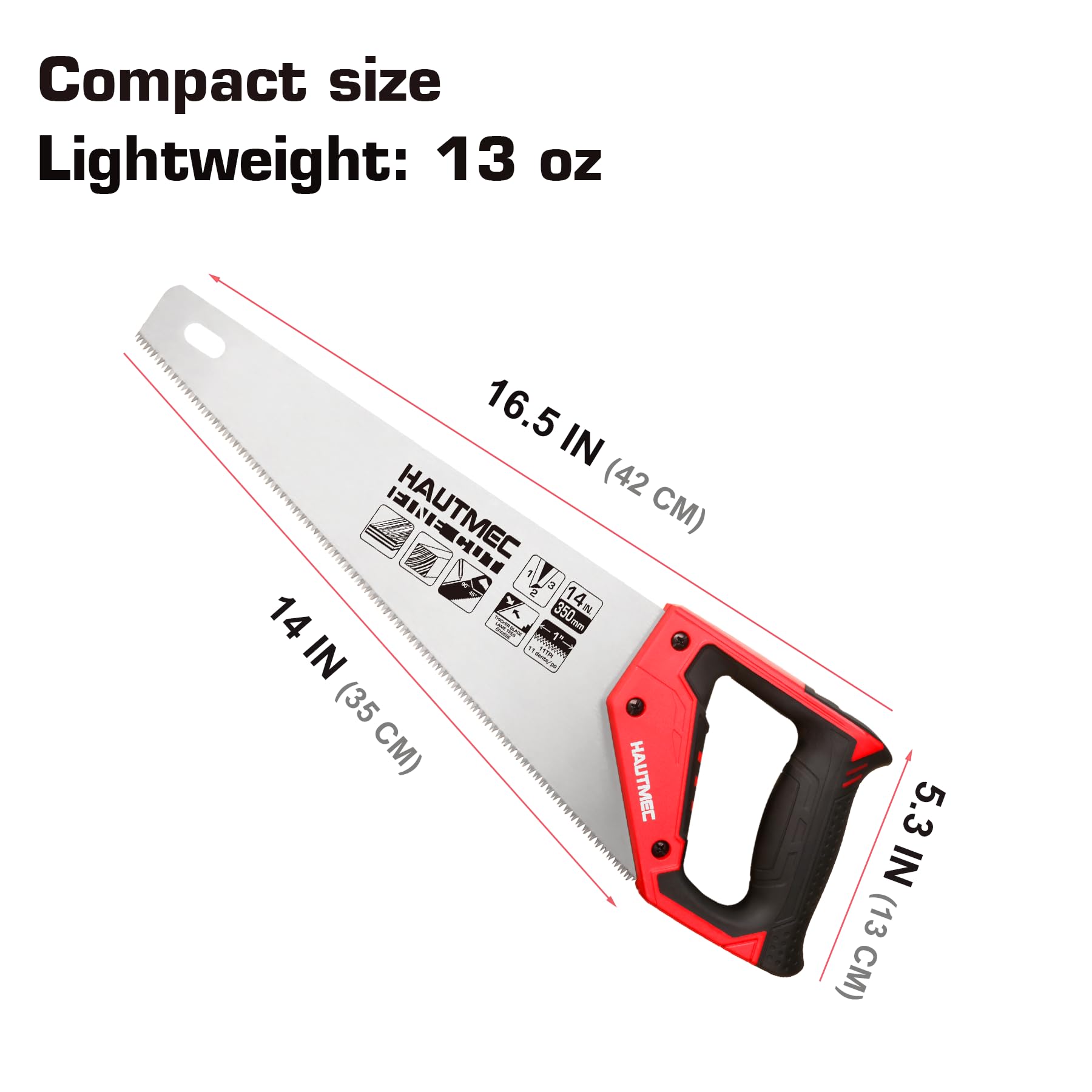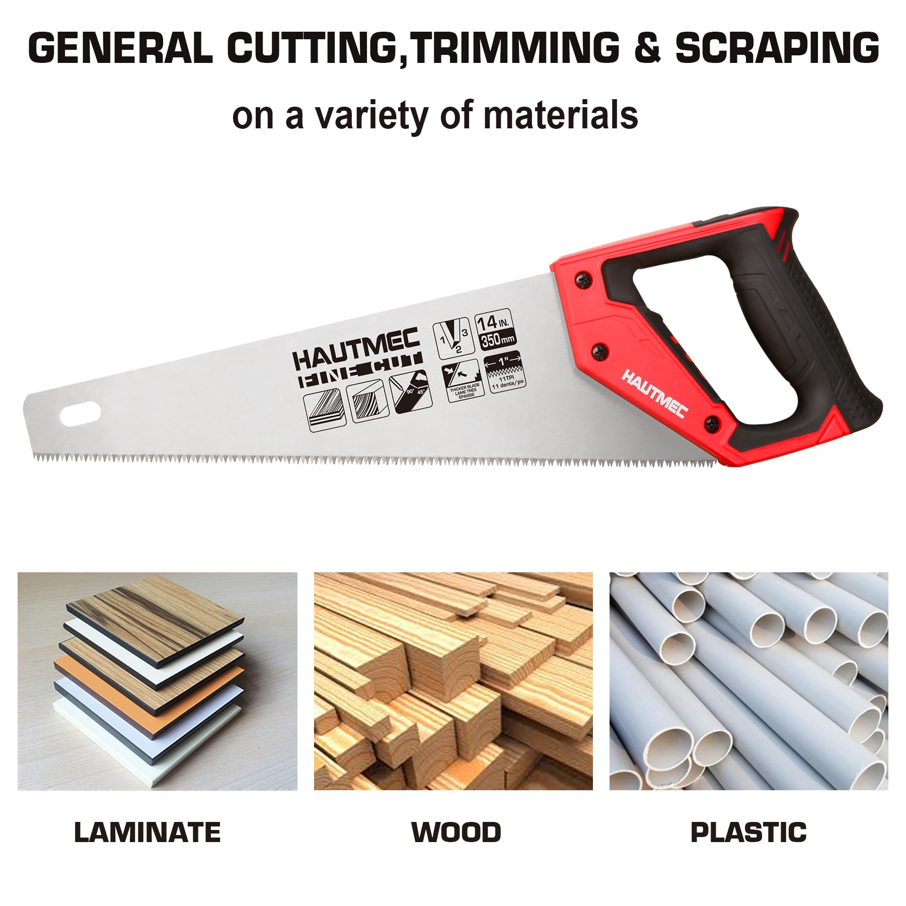 - HAUTMEC 14 in. Universal Hand Saw | 11 TPI Fine Cuts Wood Saw -