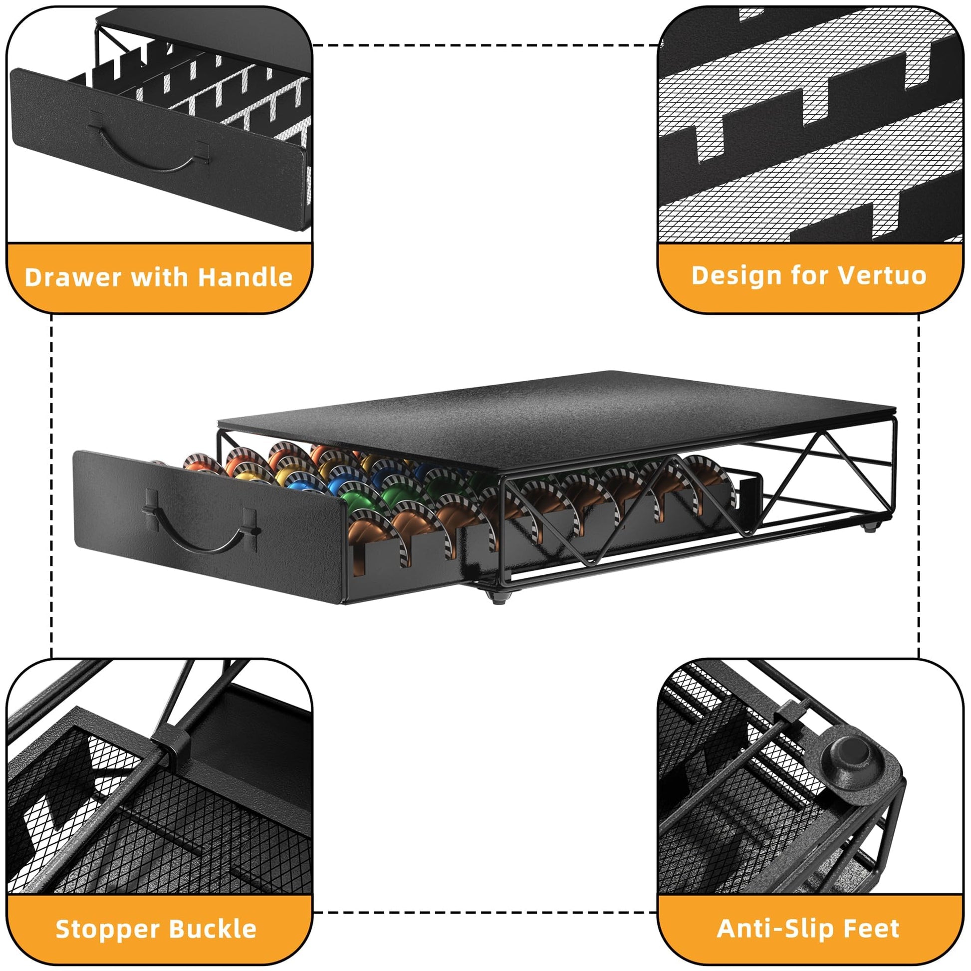 - HFHOME Metal Coffee Pod Holder | 50 Nespresso Vertuo Capsules Pod Holder -