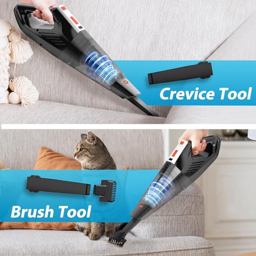 Versatile Accessories – Includes a crevice tool for tight spaces and a brush tool for tackling hair and embedded dirt.