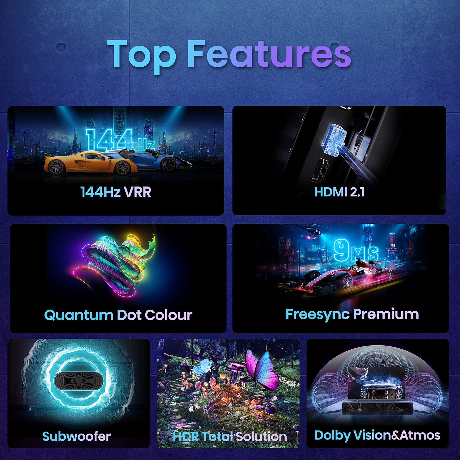 Top-tier Gaming Performance: 144Hz refresh rate, Freesync Premium, and HDMI 2.1 ensure the smoothest, most responsive gaming experience.