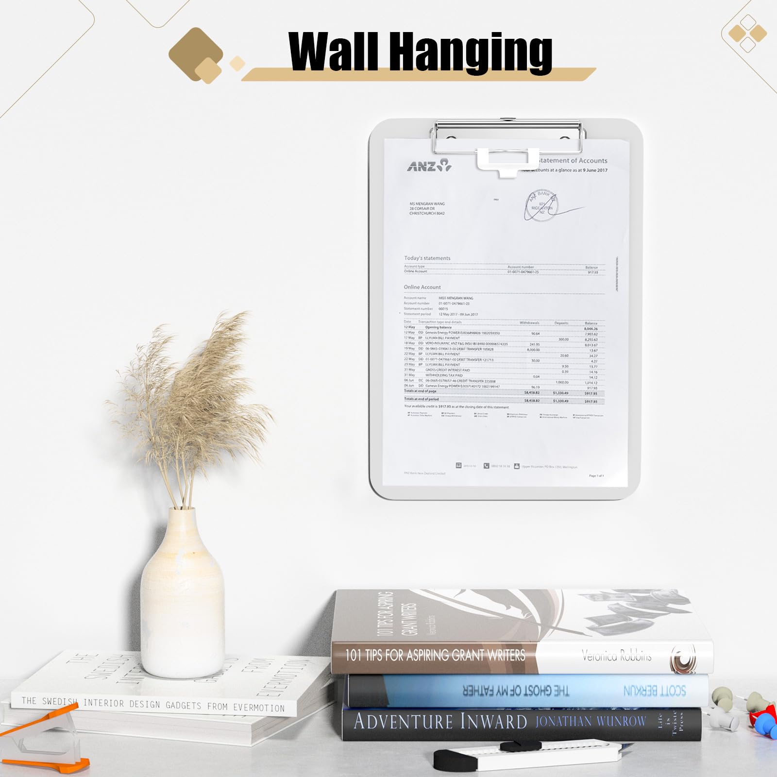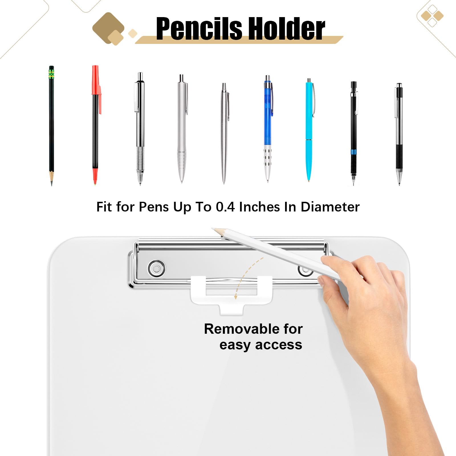Wide Storage Capacity – Holds 80-100 sheets of A4 paper securely, with a low-profile clip and pen holder for added convenience.