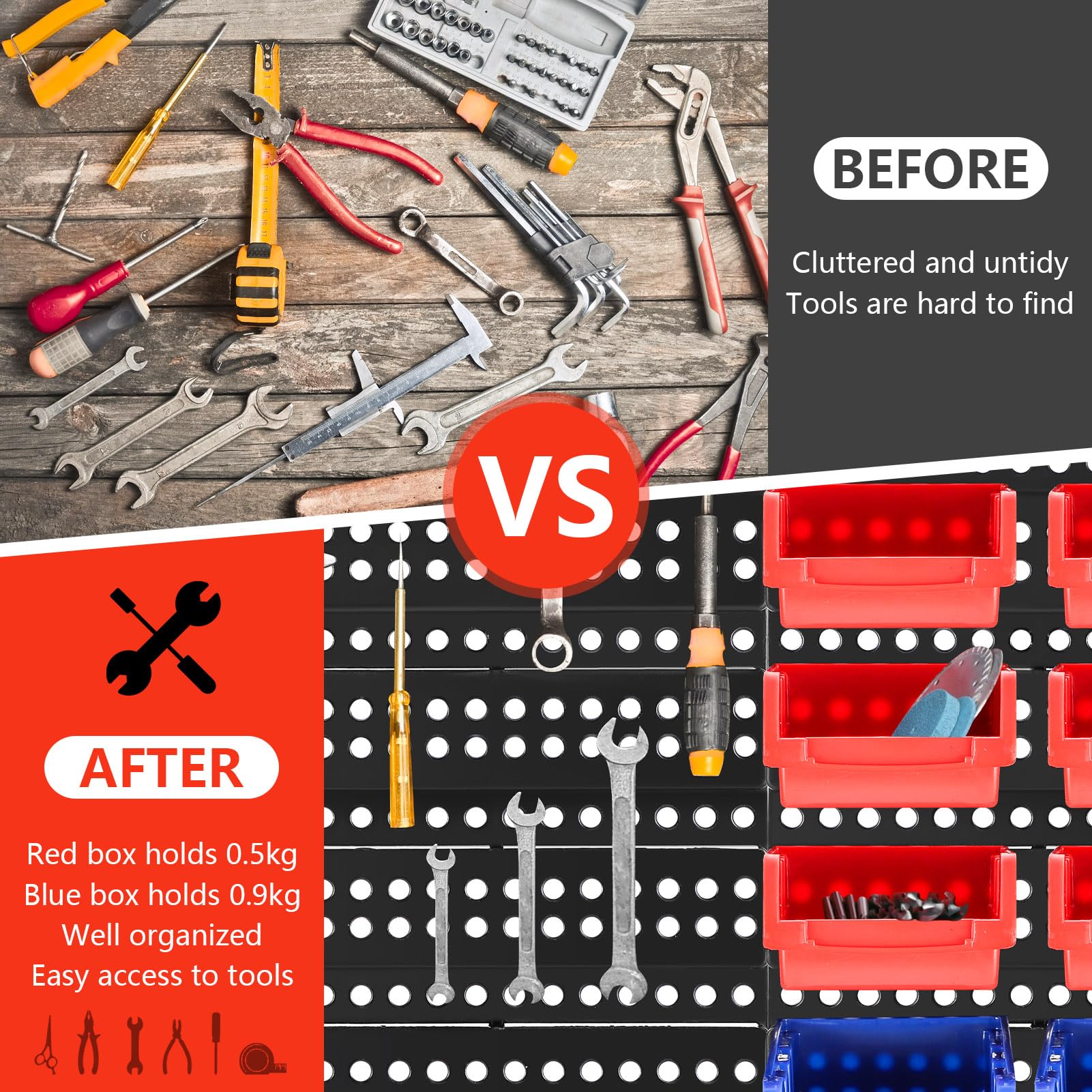 Tidy up your workspace with the Holdfiturn Wall Mounted Storage Bins, designed for practical and durable organization. This set includes 30 storage boxes in vibrant red and blue, offering a smart way to keep your small parts, tools, and other items easily accessible and neatly arranged. Ideal for any workshop, garage, or home use, these bins help create a more efficient and clutter-free environment.