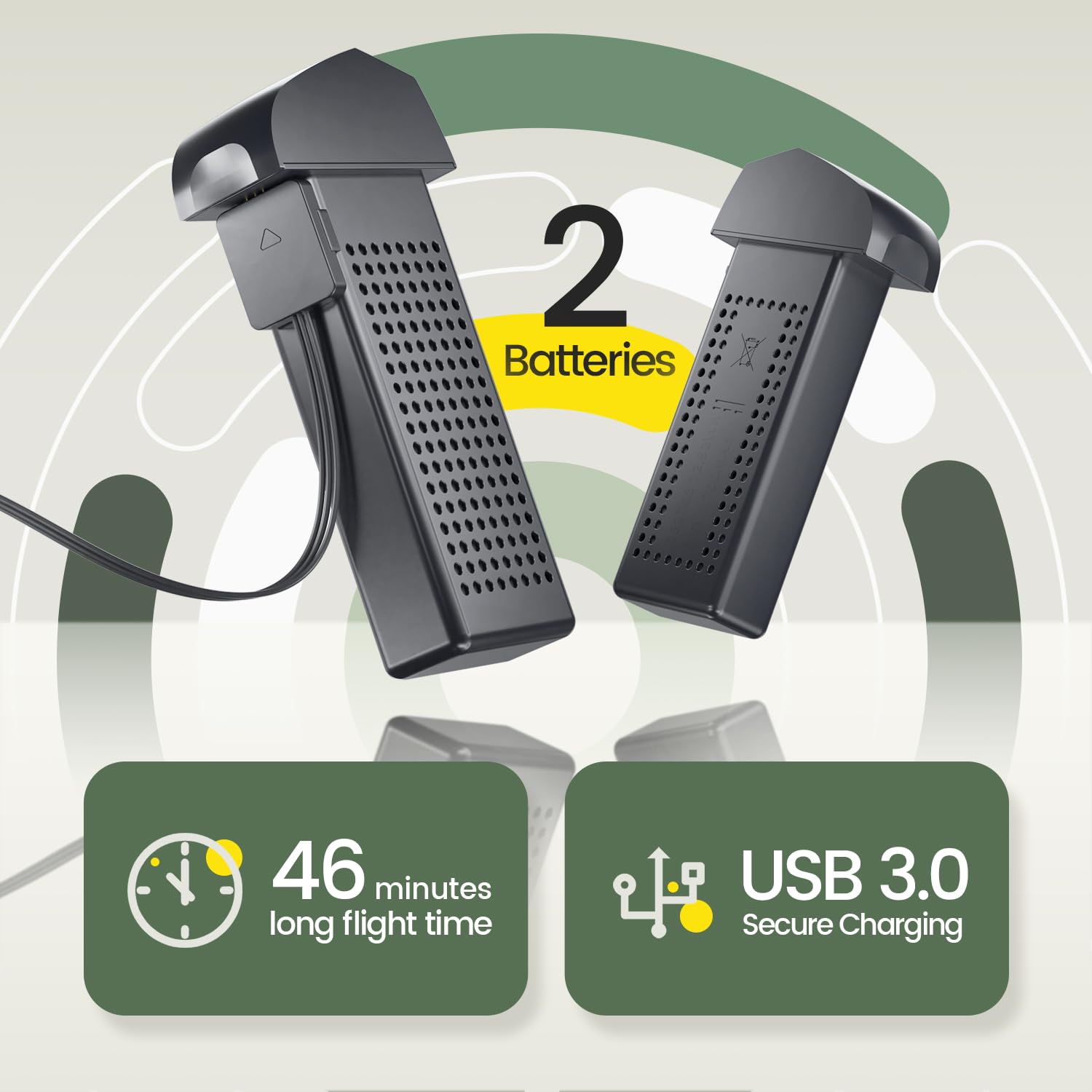 Extended Flight Time: Comes with two batteries for up to 46 minutes of flight time, allowing for longer aerial adventures.
