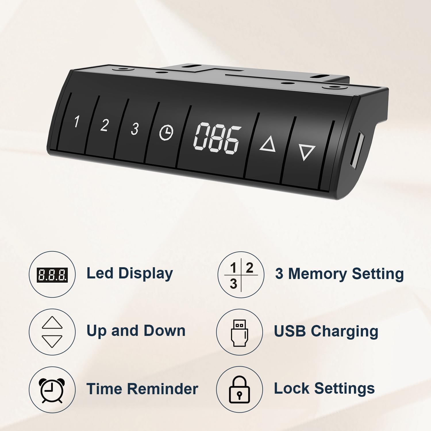 Ergonomic Smart Desk: Features an upgraded smart controller with 3 memory modes, a sedentary reminder, a safe lock mode, USB charging, and LED touch display.