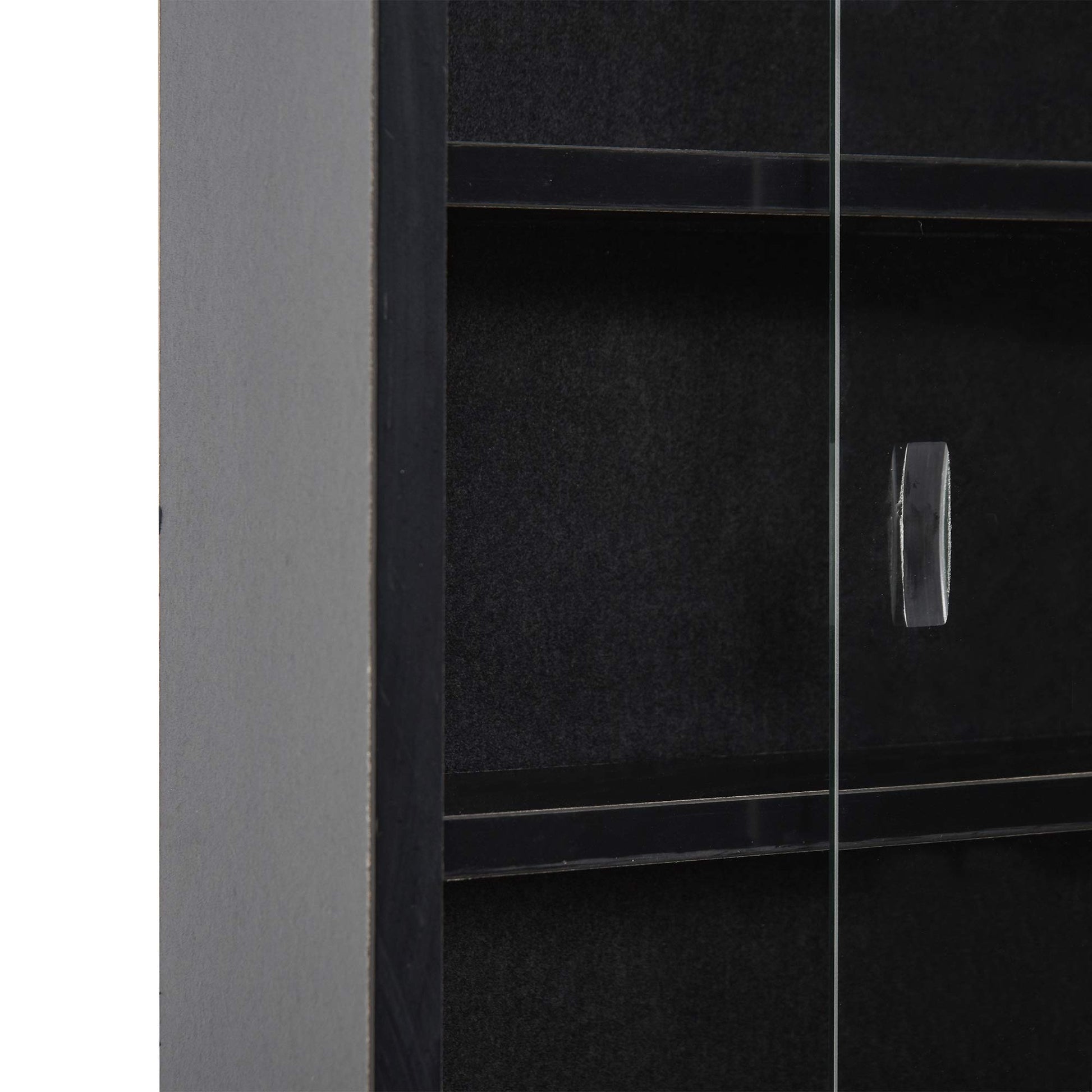 Glass Doors: The two glass doors slide open smoothly, allowing easy access to your displayed items while keeping them protected.