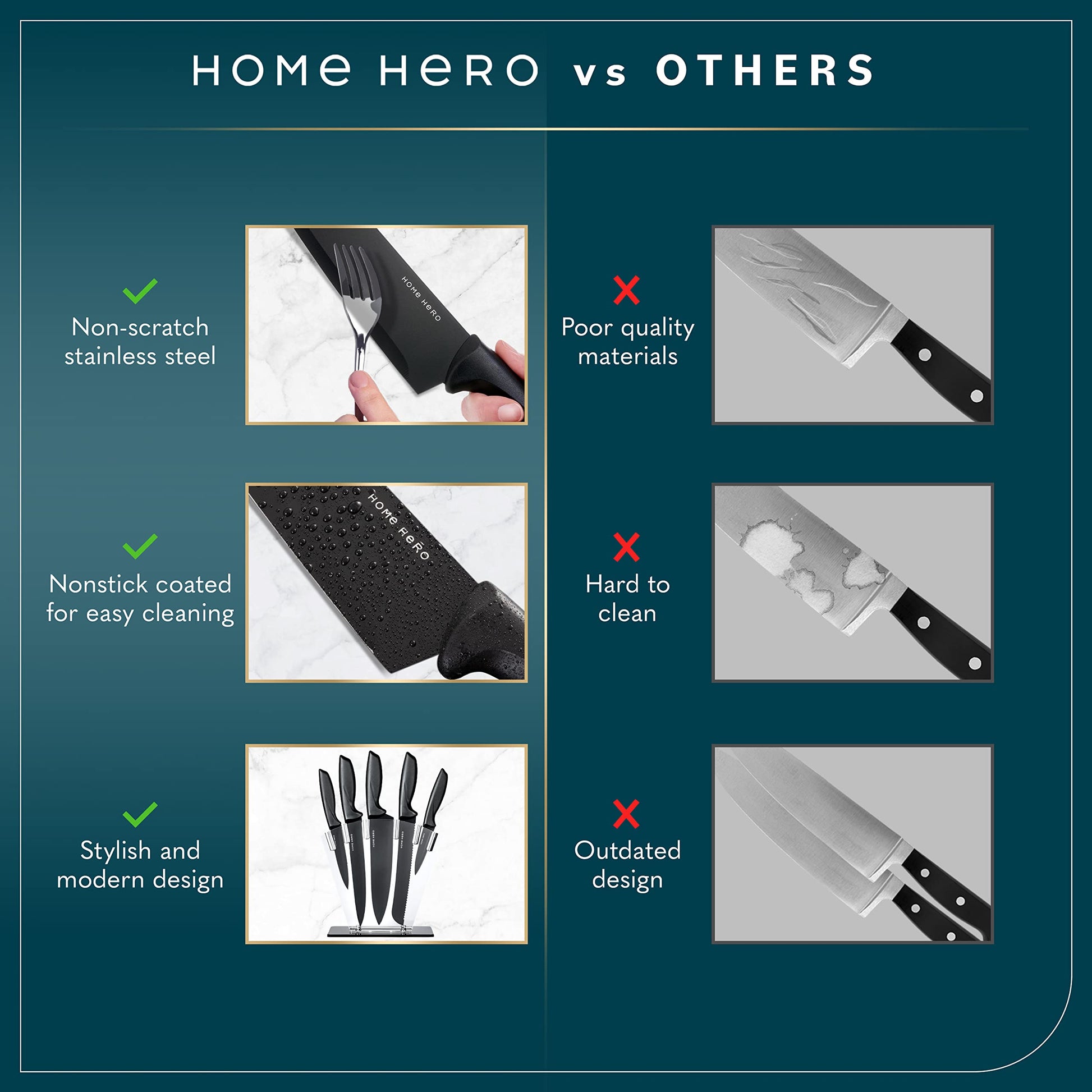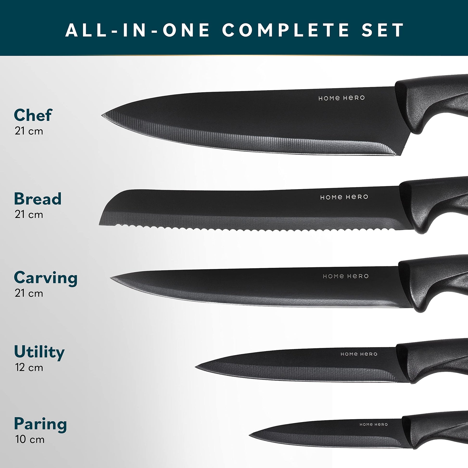- Home Hero Ultra-Sharp Stainless Steel Kitchen Knife Set - Chef Knives Set (7 pcs Set -