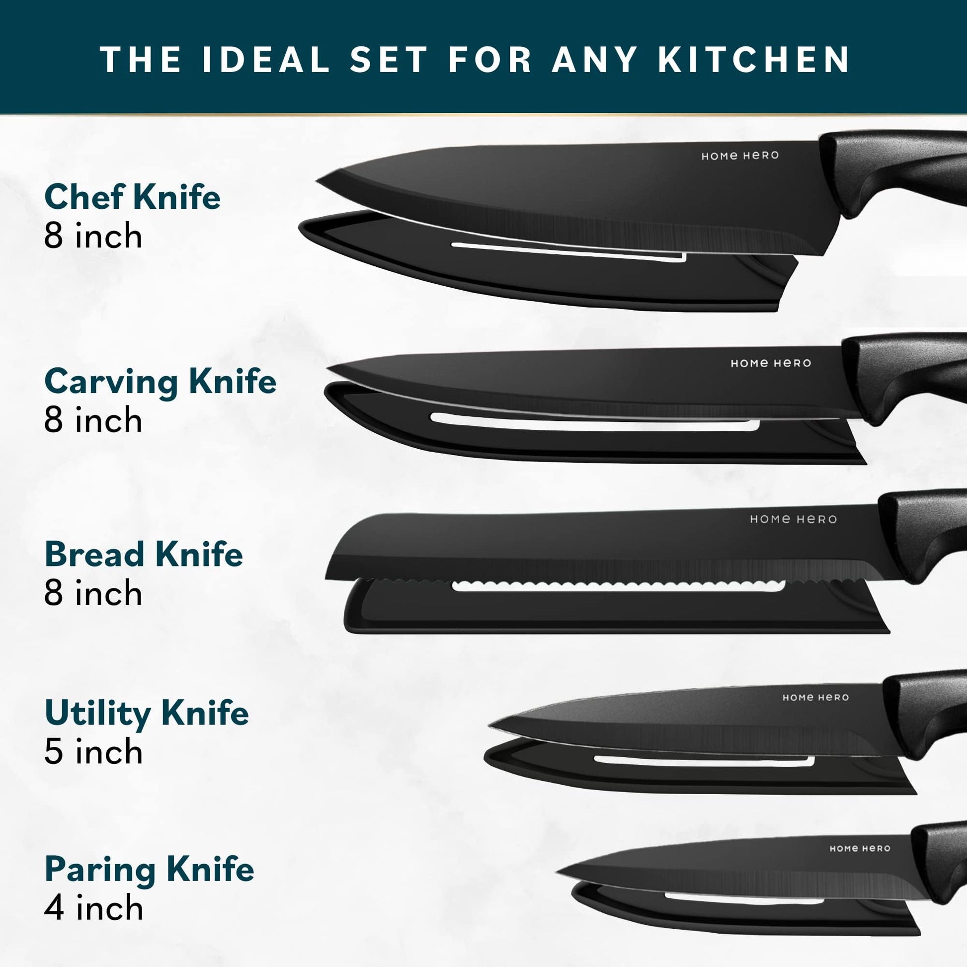 - Home Hero Ultra-Sharp Stainless Steel Kitchen Knife Set - Chef Knives Set -