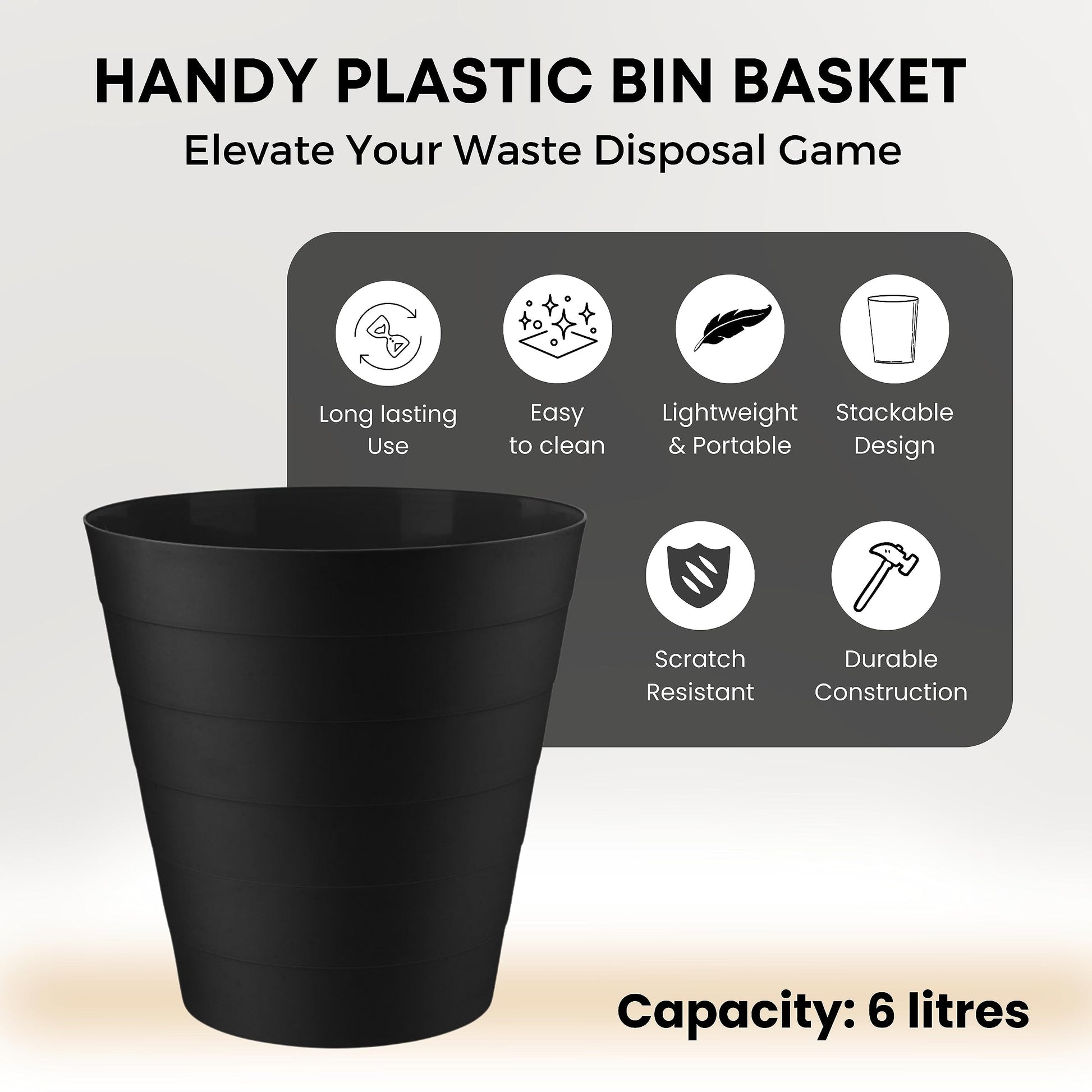 - Homeshopa Plastic Waste Paper Bin | 6L | Round Waste Basket Trash Can | Lightweight Rubbish Bin -