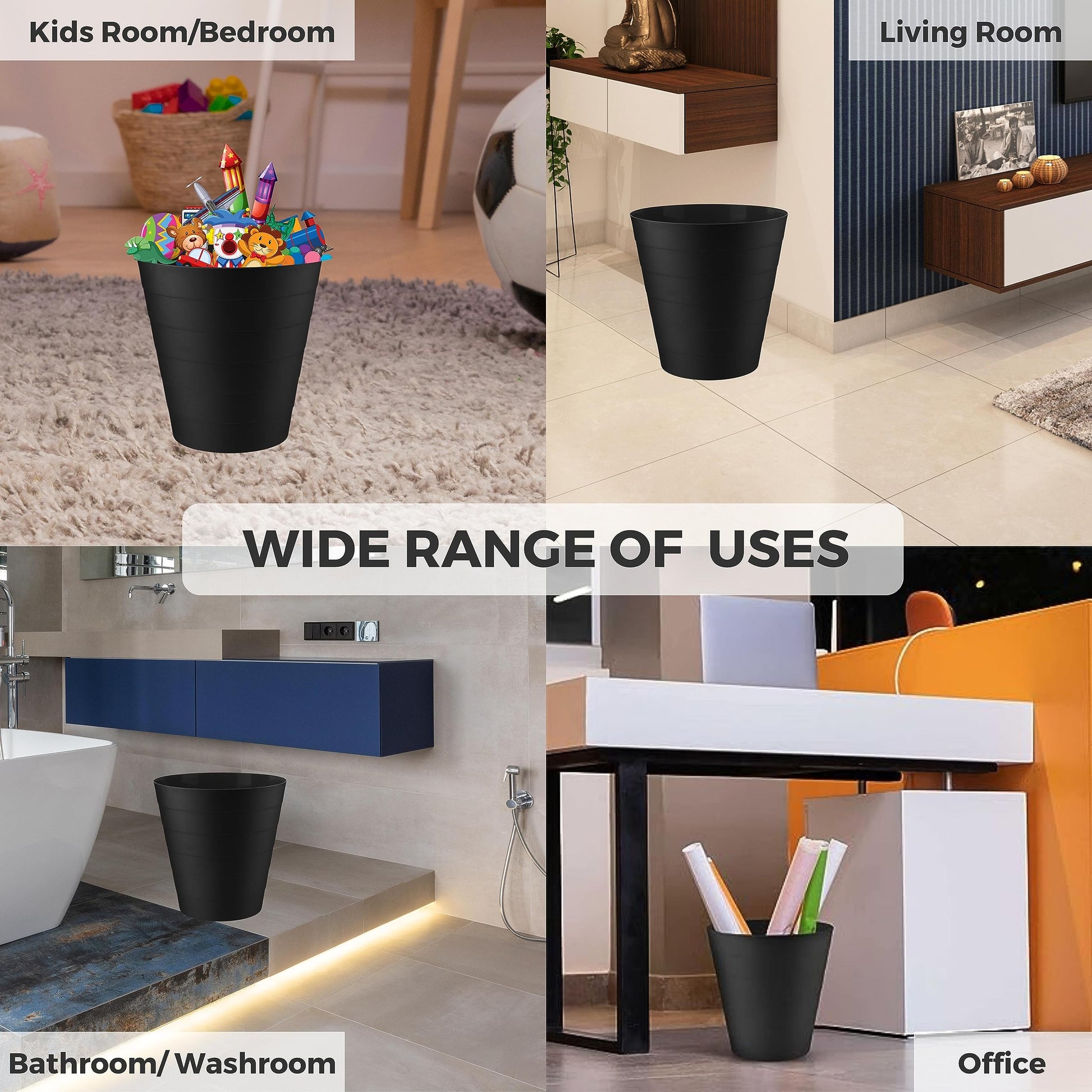 Durable Material: Made from high-quality, non-toxic plastic, this waste basket is sturdy, long-lasting, and versatile. Its easy-to-clean surface just needs a quick wipe with a damp cloth to maintain its appearance.