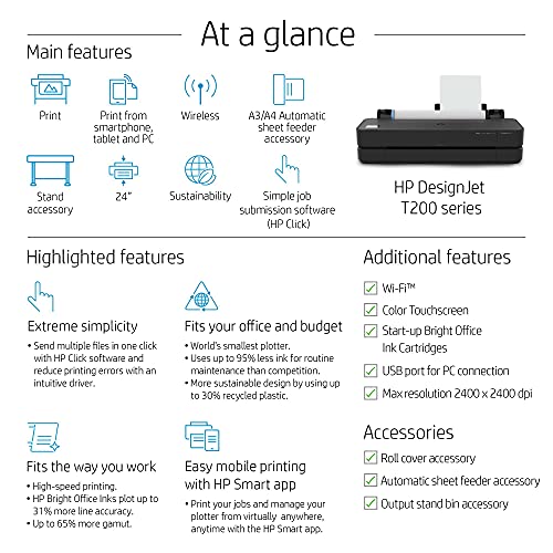 - HP DesignJet T230 Large Format Plotter Printer 24in up to A1 | Mobile Printing | Wi-Fi | Gigabit Ethernet | Hi-Speed USB 2.0 -