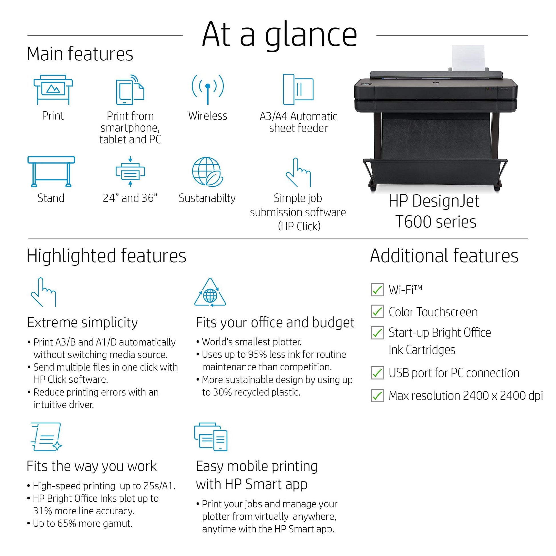 - HP DesignJet T630 Large Format Plotter Printer 24in up to A1 | Mobile Printing | Wi-Fi | Gigabit Ethernet | Hi-Speed USB 2.0 -