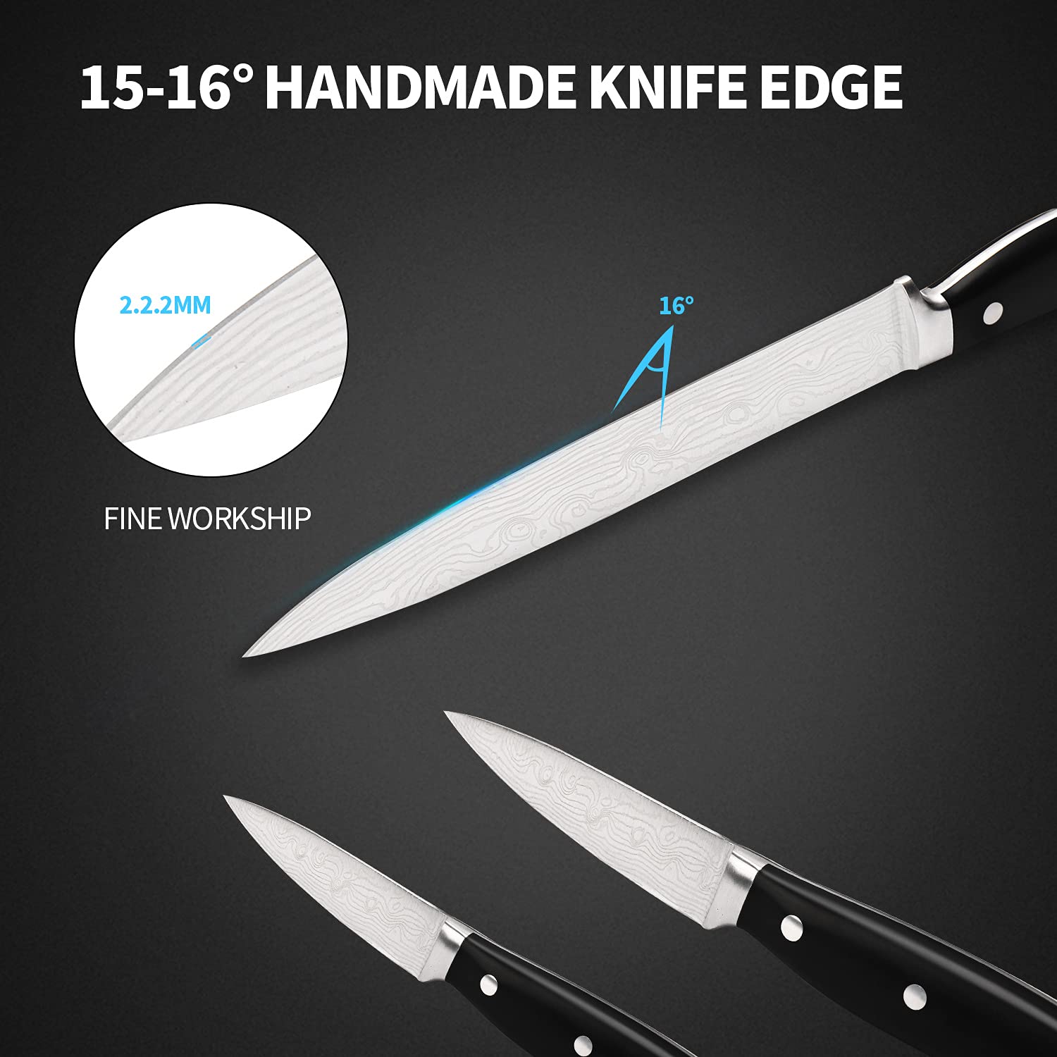 Razor-Sharp Blades – Hand-sharpened to 16-18° per side for ultra-thin slicing and long-lasting durability.