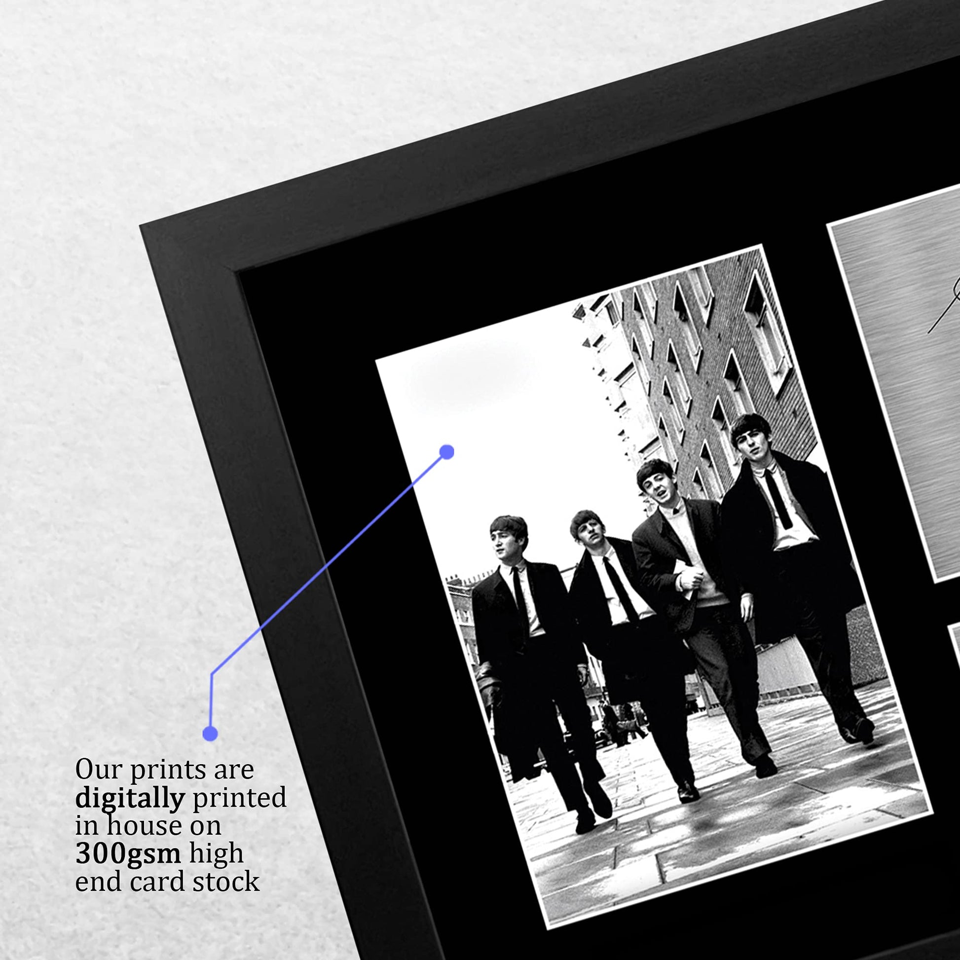 Authentic Music Memorabilia: Featuring a high-quality printed photo of The Beatles with a printed copy of their famous autograph signatures, this display brings a piece of music history into any room.