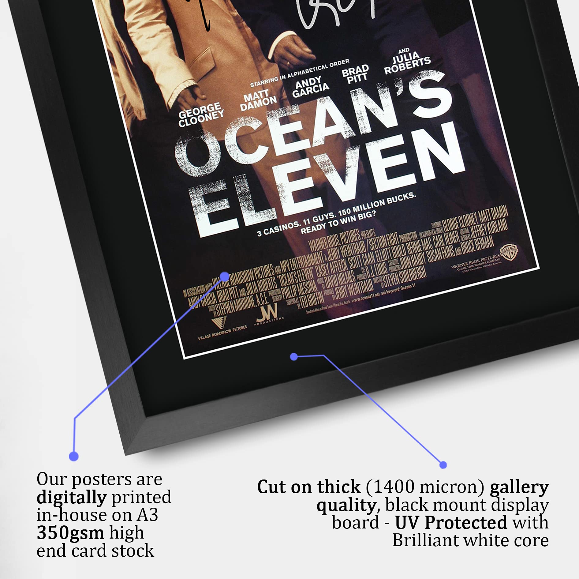 Iconic Film Poster: A premium-quality reproduction of the Ocean's Eleven movie poster, featuring George Clooney, Brad Pitt, and the rest of the legendary cast.