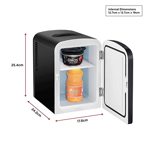 Compact Size: The 4-litre capacity fits six 350-ml soft drink cans, making it perfect for individual use. It includes a removable shelf for storing smaller items like yogurt, milk, juice, or even skincare products, providing a versatile space for various needs.