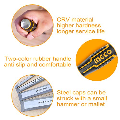 - INGCO 4Pcs Wood Chisel Set | Cr-V Woodworking Carpenter Carving | 6/12/19/25mm HKTWC0401 -