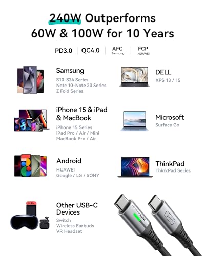 INIU 240W USB-C to USB-C Cable - Fast Charging for All Devices