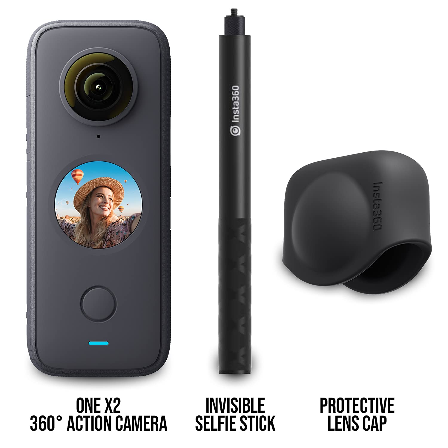 - Insta360 ONE X2 360 Degree Action Camera | PREMIUM Kit | Invisible Selfie Stick | Lens Cap -
