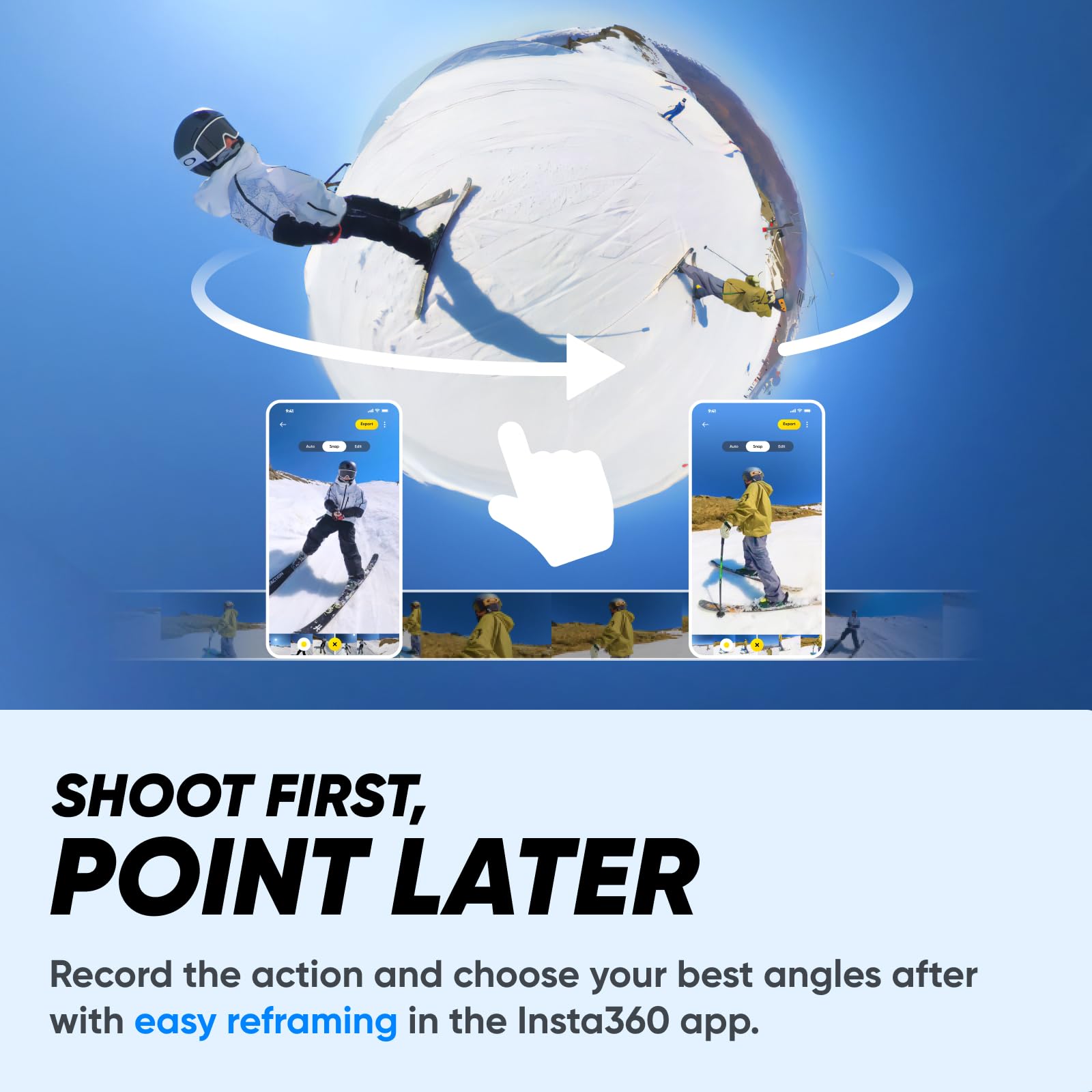 5.7K 360° Recording & Reframing: Shoot first, then choose your preferred angle with 5.7K Active HDR videos, 72MP photos, and 8K time lapse. Reframe with ease using Insta360's intuitive app.