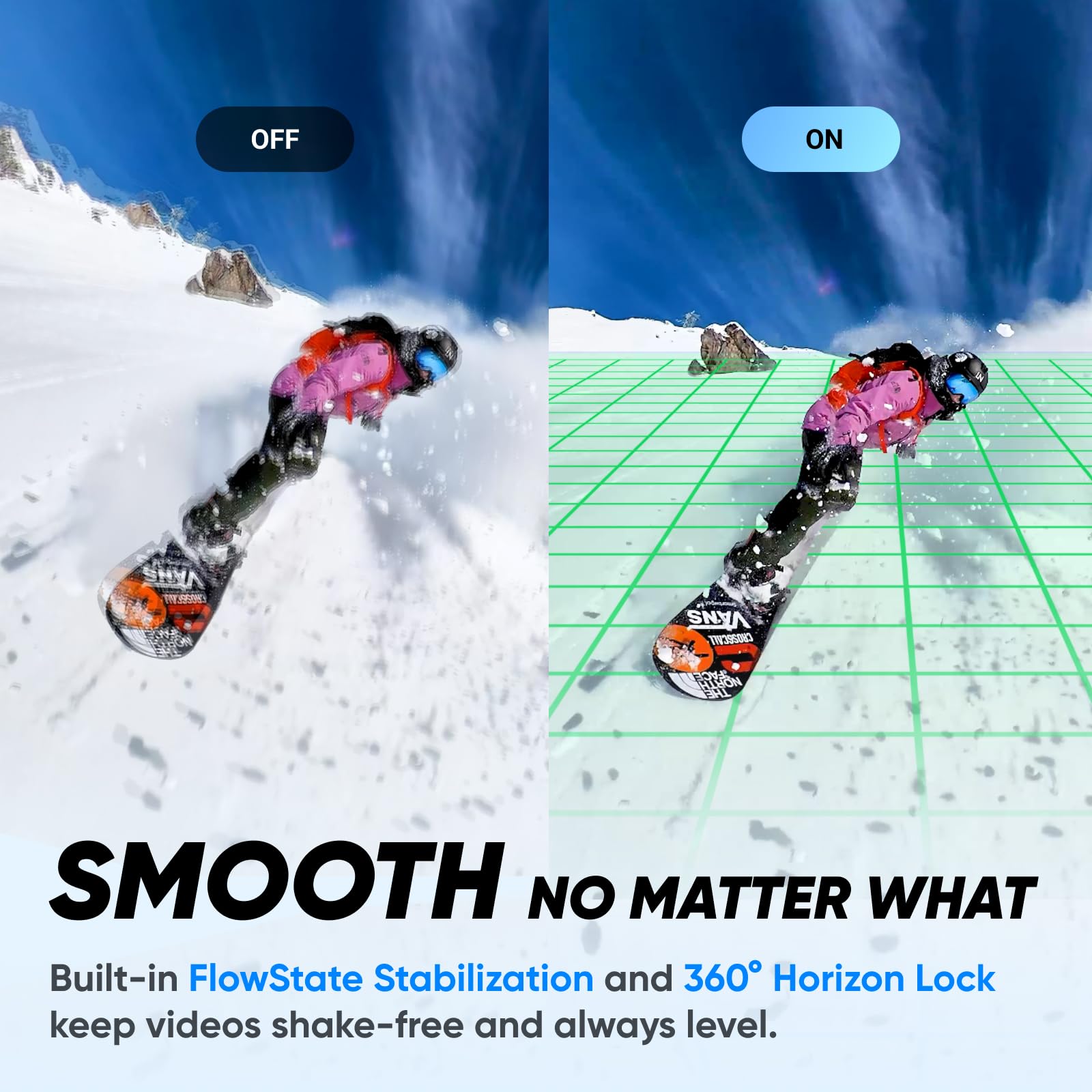 FlowState Stabilization & 360° Horizon Lock: Achieve smooth and stable videos with advanced stabilization technology, even in the most dynamic environments.