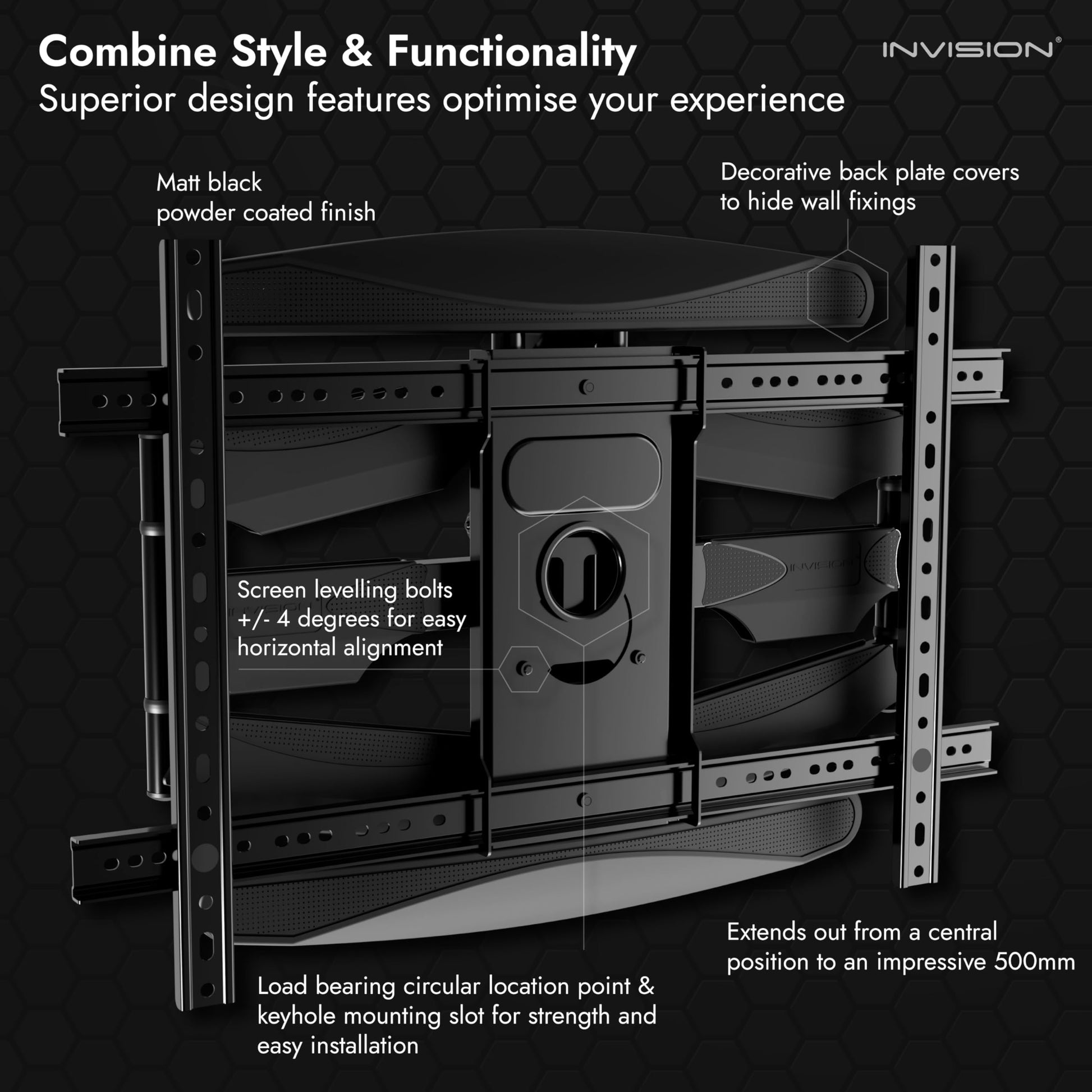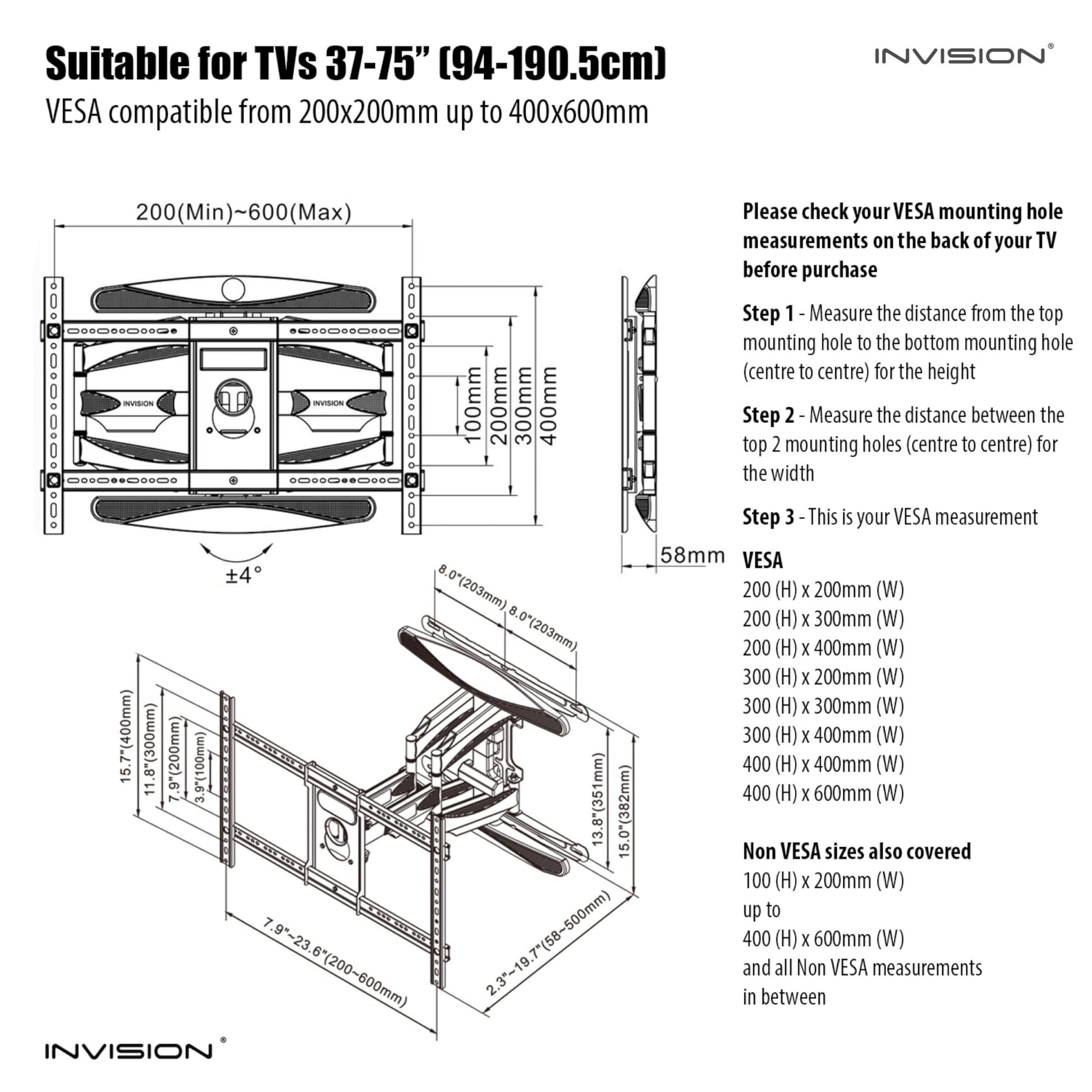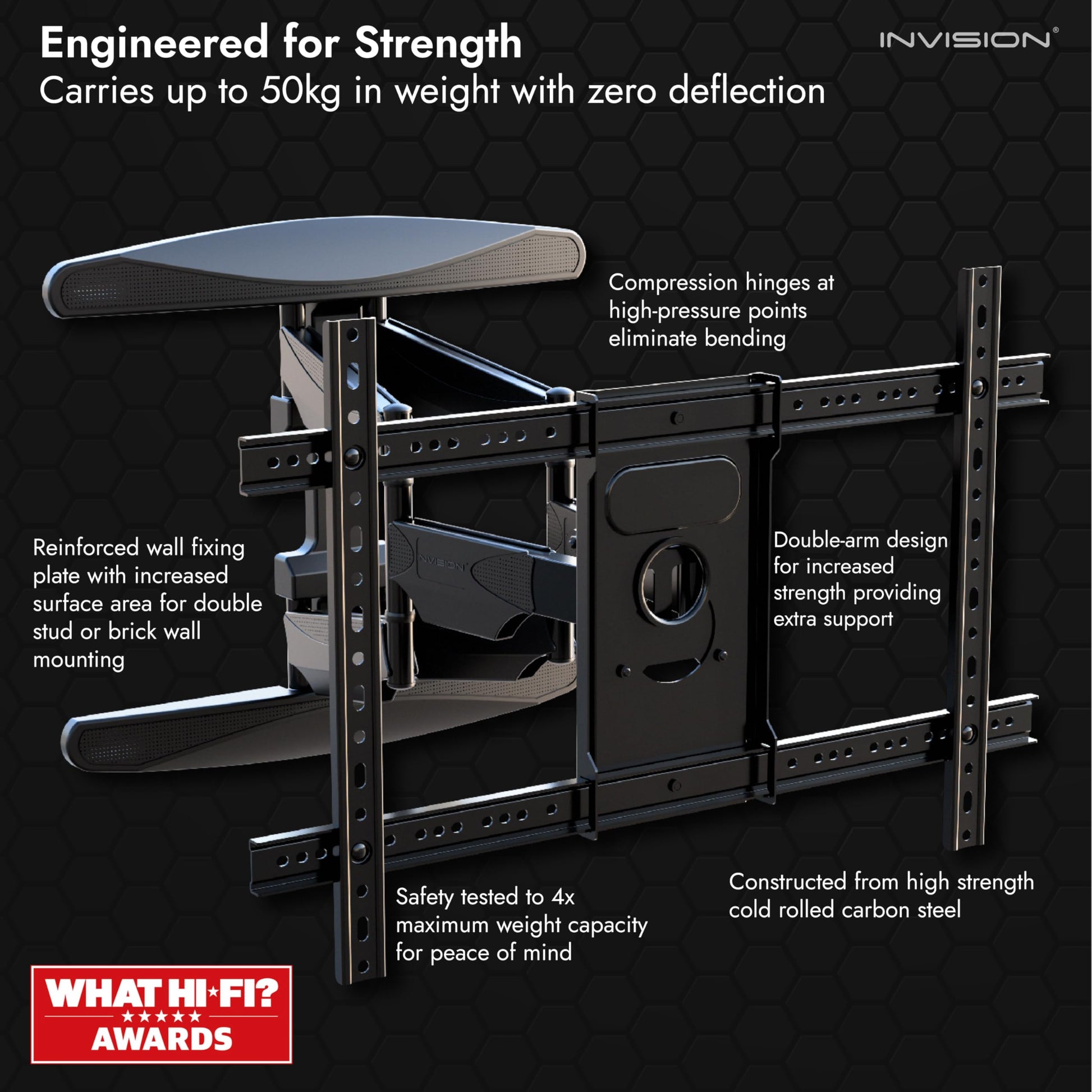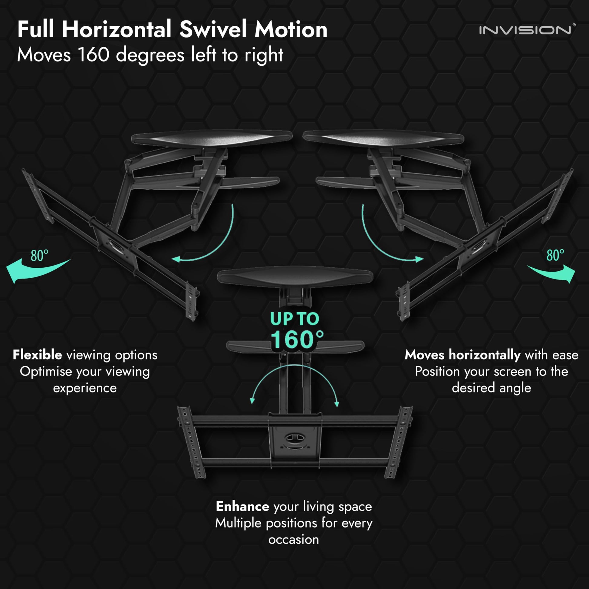 - Invision Ultra Strong TV Wall Bracket Mount Double Arm Tilt & Swivel for 37-75 Inch (94-190.5cm) LED LCD OLED Plasma & Curved Screens -