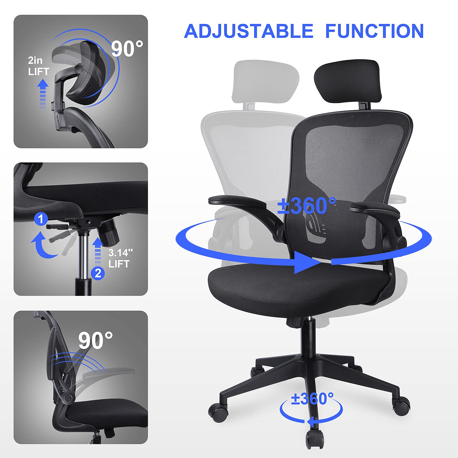 - JAJALUYA Office Chair | Mesh Computer Chair | Adjustable Headrest | Lumbar Support -