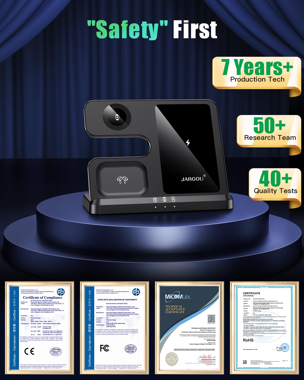 - JARGOU Wireless Charger for iPhone/Apple Watch/AirPods | 3 in 1 Wireless Charging Station -