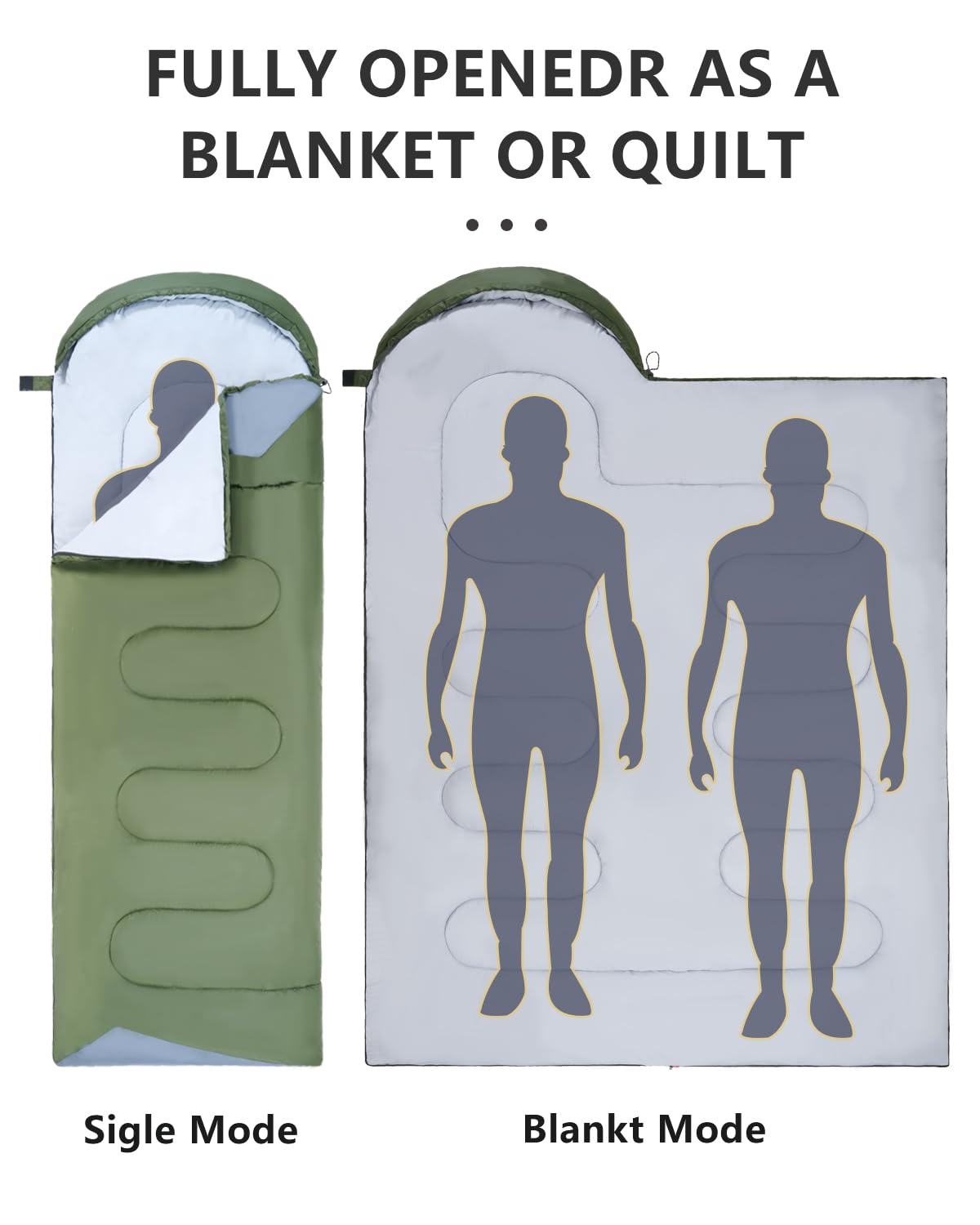 Durable & Comfortable: Made with high-quality 210T nylon, waterproof and breathable fabrics, and soft polyester pongee lining for a comfortable and skin-friendly sleep.