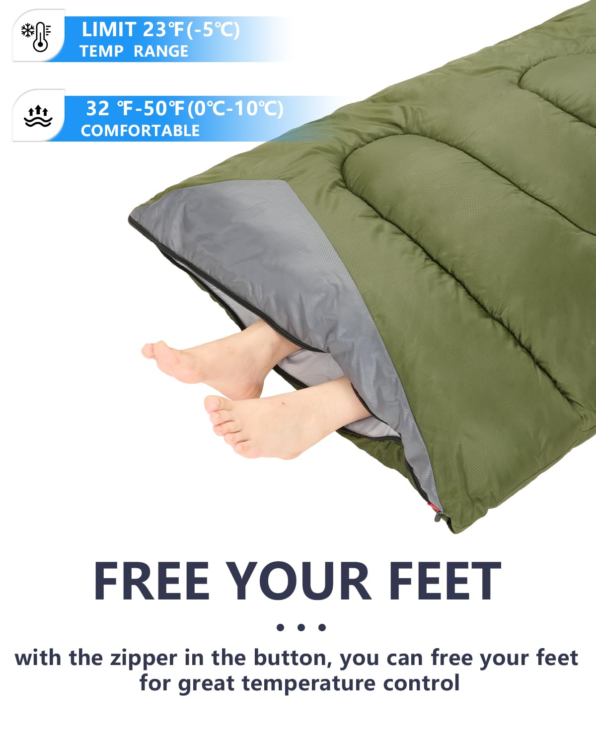 Spacious Design: Accommodates taller individuals comfortably, offering more room compared to other sleeping bags.
