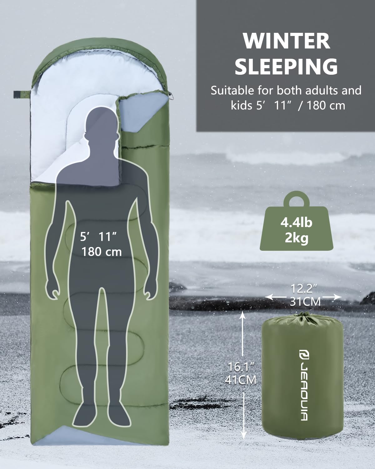 - JEAOUIA Sleeping Bags for Adults | Cold Weather Winter Compact Backpack Sleeping Bag | Carry Bag -